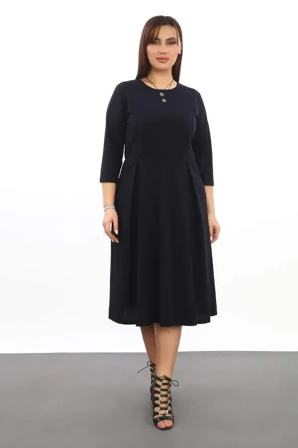 Katta hajmi boʻlgan plisli choʻntakli velo yaxali qora koʻylak | Nafosiylik va zarafetning uygʻunligi