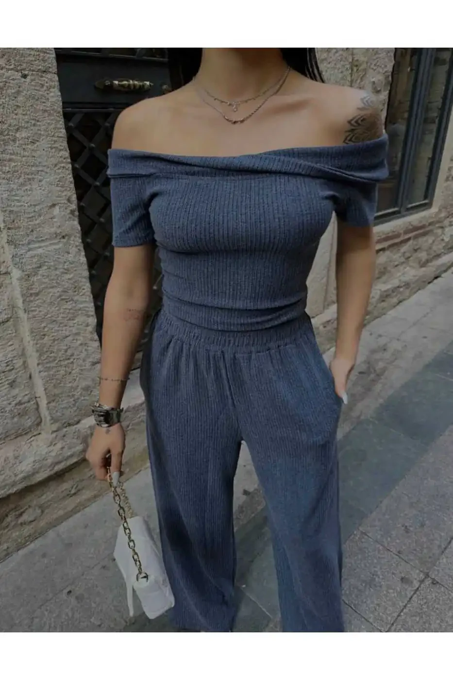Boat Neck Ruched Blouse and Pants Set - INDIGO is a must-have piece in the modern woman's wardrobe, combining elegance and comfort. The noble stance of the indigo color adds a different touch to the design of the set, while the boat neck blouse and comfortable cut pants combination offer all-day comfort. This special design will make you stand out both in daily use and in special moments. The boat neck detail of the blouse offers an elegant look while gently emphasizing your shoulders. The ruched design allows the blouse to have a mobile and dynamic structure. This detail also perfectly complements your body lines. The comfortable cut of the pants allows you to move freely throughout the day. The elastic band at the waist ensures that the pants fit your body perfectly while guaranteeing that you do not compromise on your comfort. The indigo color highlights the elegance and grace of the set. This color can be easily combined with different accessories and shoes, allowing you to create different styles. Whether you create a casual combination with sneakers or achieve a more elegant look with heels, the Boat Neck Ruched Blouse and Pants Set - INDIGO will always help you reflect your style. This set is made of high-quality fabric. The soft texture of the fabric gently touches your skin and provides comfort throughout the day. At the same time, the breathable structure of the fabric prevents sweating and keeps you fresh all day long. The seams of the set are carefully made, which guarantees the long life of the product. The Boat Neck Ruched Blouse and Pants Set - INDIGO not only offers a stylish look but also offers practical use. The set is easy to care for and can be easily ironed. These features are a great advantage for women with a busy lifestyle. This set is available in different size options. In this way, it is possible to find an option suitable for every body type. You can easily choose the most suitable size for yourself by examining the product size chart. Boat Neck Ruched Blouse and Pants Set - INDIGO is a unique product that combines elegance, comfort and quality. This set will be the indispensable part of your wardrobe and will always help you reflect your style.