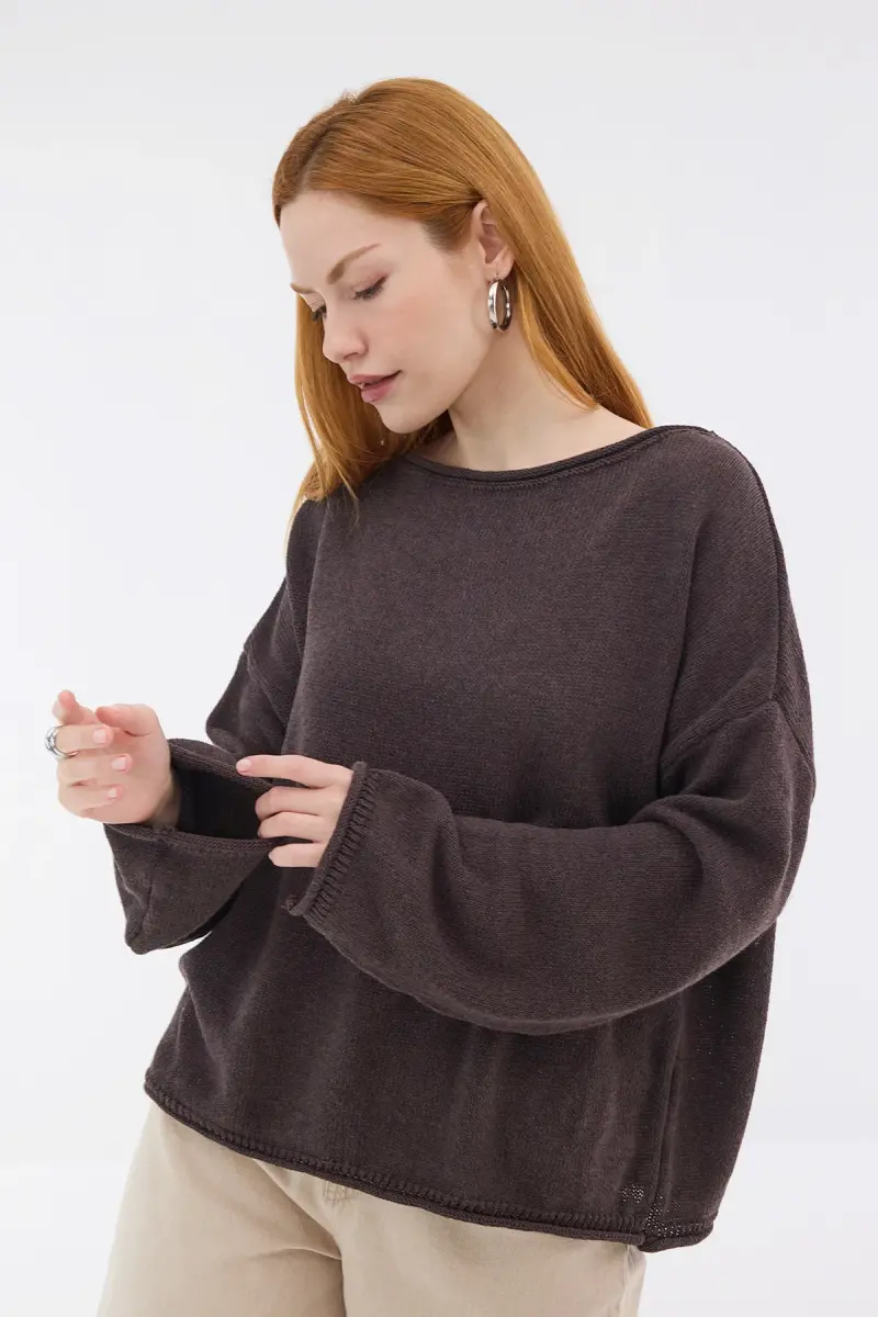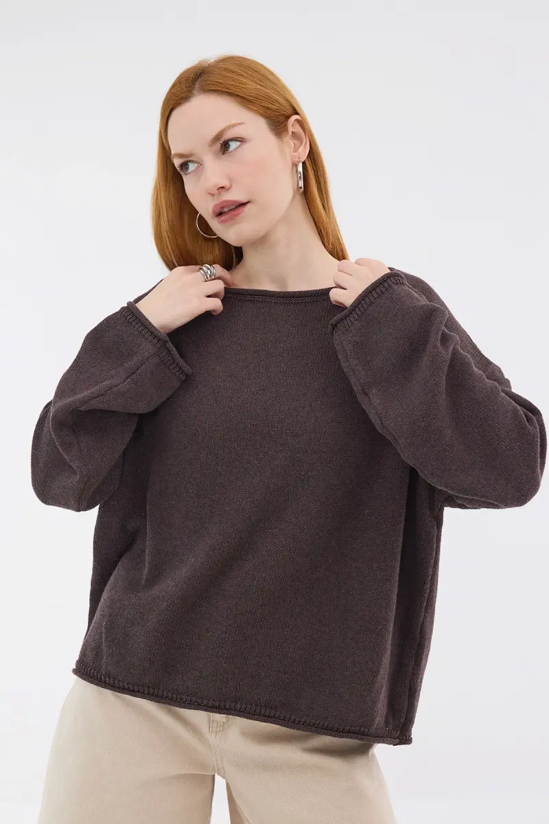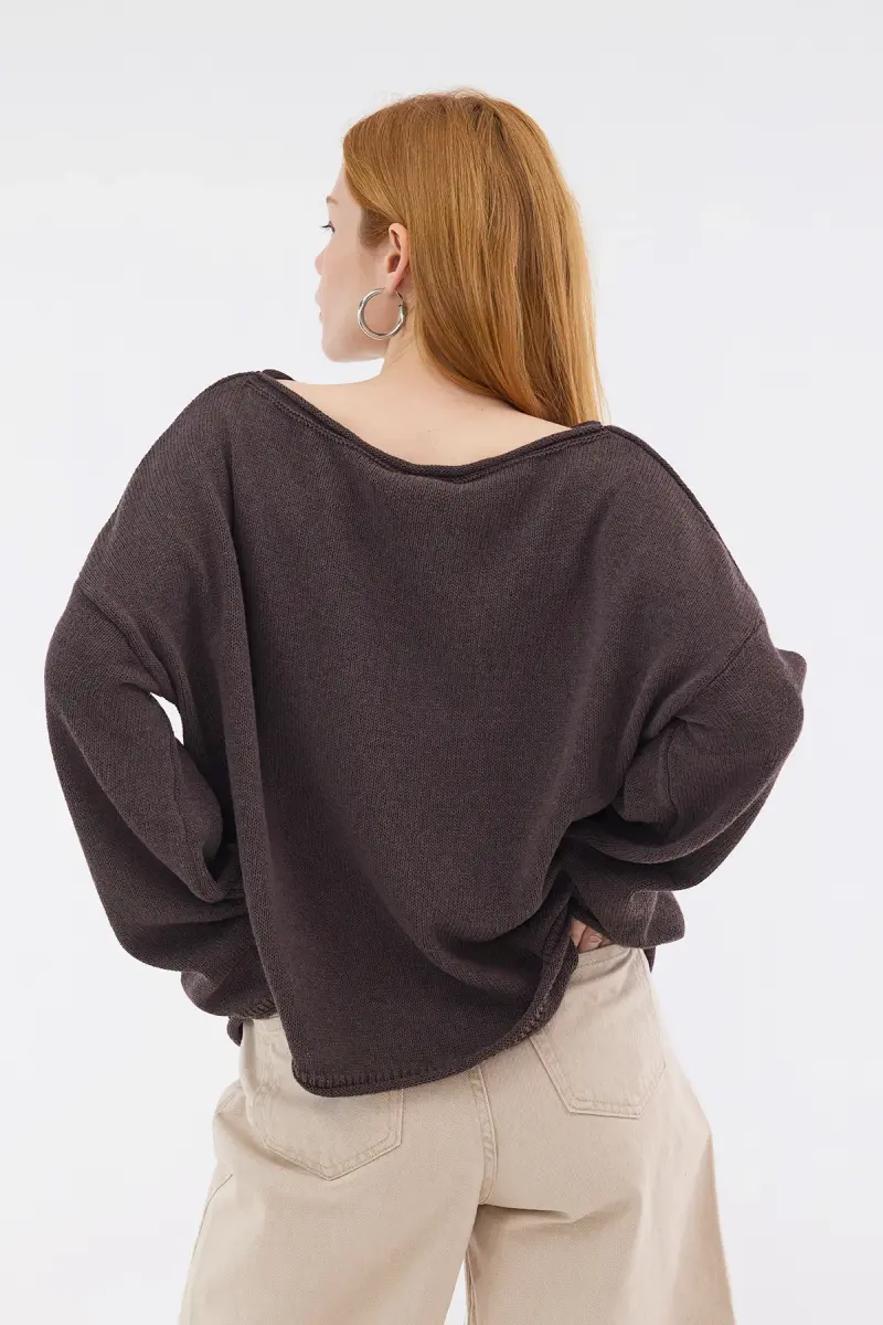 Kayık Yaka Triko Kazak K10237-A5-Kahve