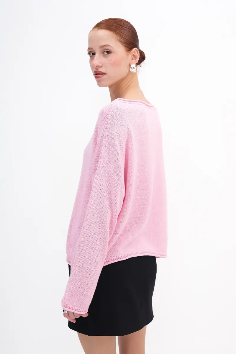Kayık Yaka Triko Kazak K10237-A5-Pembe