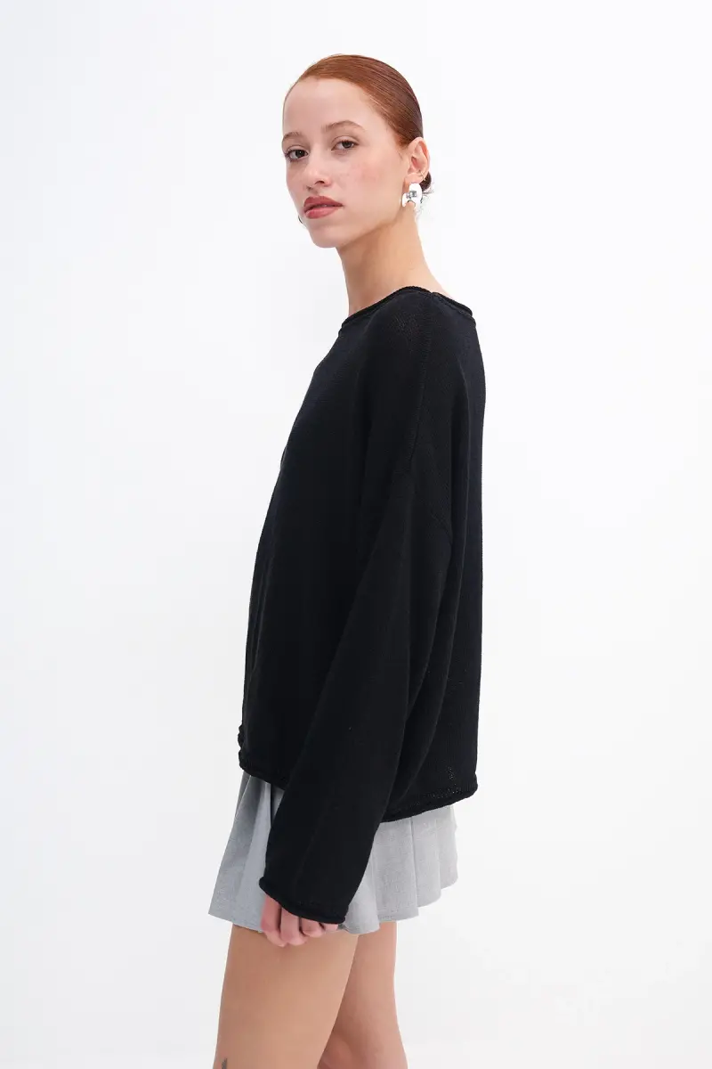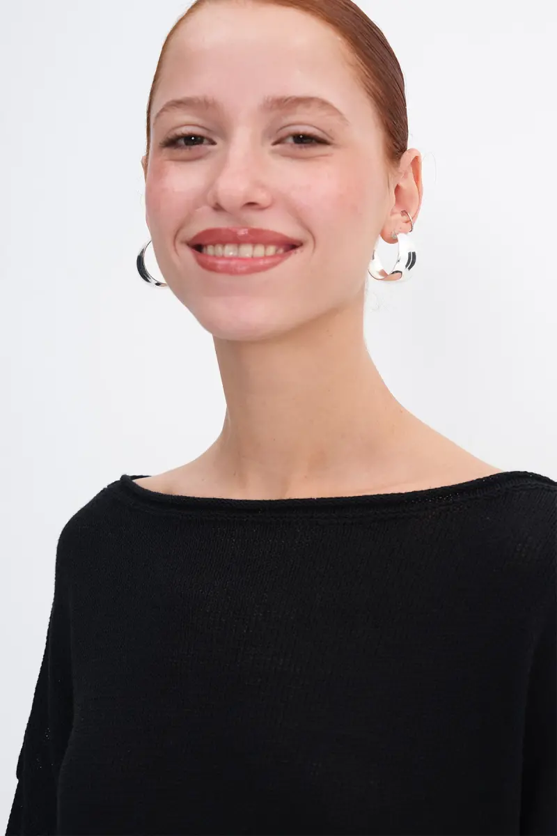 Kayık Yaka Triko Kazak K10237-A5-Siyah