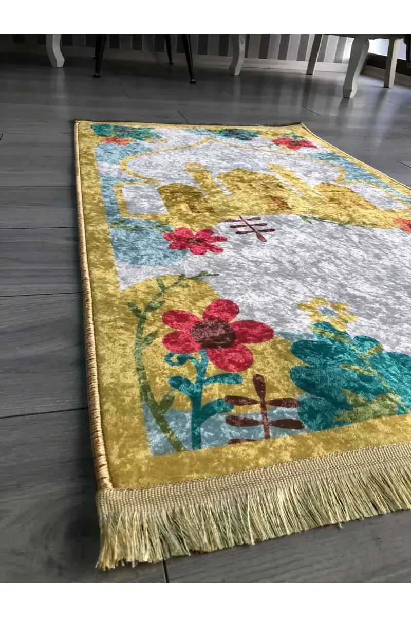 YTR HOME tarafından özenle tasarlanmış, Kaymaz Taban Makinede Yıkanabilir Dijital Baskılı Seccade ile ibadetlerinize konfor ve estetik katın. Sarı rengin sıcaklığı ve modern dijital baskı deseniyle her mekana uyum sağlayan bu seccade, hem kullanışlı hem de şık bir seçenektir. Üst yüzeyi kadife kumaş sayesinde ipeksi bir dokunuş sunarken, kaymaz tabanı güvenli bir kullanım deneyimi sağlar. Antialerjik ve antibakteriyel özellikleri sayesinde sağlığınızı korurken, çamaşır makinesinde yıkanabilir olması da pratik bir kullanım sunar. Bu seccade, hem bireysel kullanım hem de sevdiklerinize anlamlı bir hediye alternatifi olarak düşünülebilir. İbadetlerinizi daha huzurlu ve keyifli hale getirmek için tasarlanan bu ürün, aynı zamanda yaşam alanlarınıza da değer katacaktır. Sıcak transfer baskı tekniği ile üretildiği için ürün ölçülerinde %2-3 oranında farklılık görülebilir. Ürünümüz, doğa ve insan sağlığına zararlı hiçbir materyal içermez ve kanserojen madde bulundurmaz. Toz ve hav bırakmayan yapısıyla hijyenik bir kullanım sunarken, dört mevsim boyunca rahatlıkla kullanılabilir. Bu özel seccade ile ibadetlerinizi yaparken hem konforu hem de estetiği bir arada yaşayın.