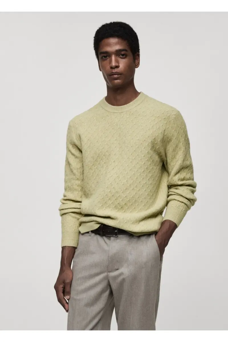 Свитер Mango, Свитер с косами, Вязаный свитер, Свитер с узорами, Свитер с круглым вырезом, Свитер в рубчик, Свитер средней толщины