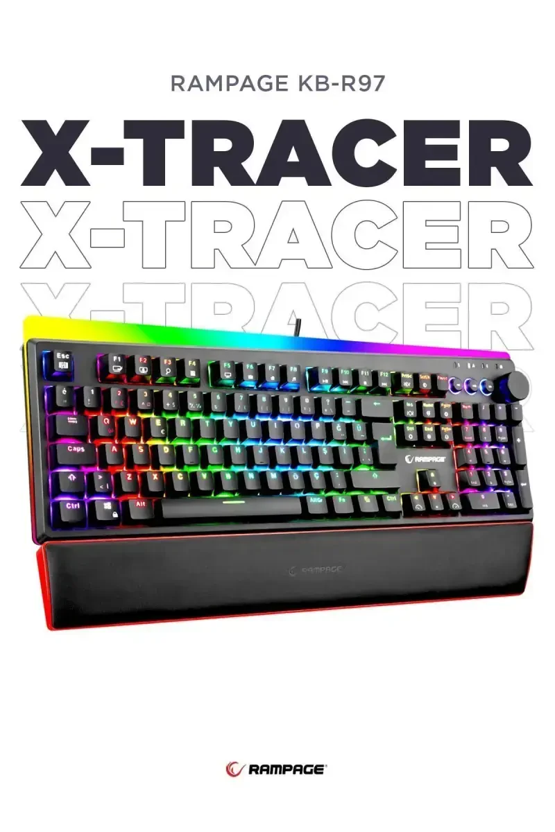 Механическая игровая клавиатура Kb-r97 X-tracer RGB с красными переключателями и подставкой для запястий от Rampage поднимает ваш игровой опыт на новый уровень благодаря качеству Rampage и функциям, специально разработанным для геймеров. Полная RGB-подсветка, механическая структура клавиш и подставка для запястий обеспечивают комфорт и производительность в длительных игровых марафонах. Раскладка клавиш Türkçe Q позволяет сохранить привычную раскладку, а скорость отклика 1000 Гц позволяет мгновенно обнаруживать даже самые быстрые реакции, что дает вам преимущество перед соперниками в игре. Плетеный кабель и USB 2.0 соединение обеспечивают долговечность и надежное соединение. Kb-r97 X-tracer - это не просто клавиатура, это инструмент, отражающий ваш игровой стиль. Вы можете персонализировать свою клавиатуру с помощью эффектов RGB-подсветки и обогатить свою игровую атмосферу. Эта клавиатура с ресурсом 50 миллионов нажатий обеспечивает бесперебойную работу в течение многих лет, а благодаря функции anti-ghosting она правильно определяет все команды, даже если нажато несколько клавиш одновременно. Благодаря функции Plug and Play вы можете сразу начать использовать ее без какой-либо установки. Подставка для запястий поддерживает ваши запястья даже при длительном использовании, снижает усталость и обеспечивает более комфортный игровой процесс. Kb-r97 X-tracer - это продукт, который отвечает ожиданиям геймеров благодаря своему стильному дизайну, прочной конструкции и превосходной производительности. С помощью съемника клавиш, входящего в комплект, вы можете легко менять и чистить клавиши. Этот продукт поставляется с руководством пользователя и гарантийным талоном и обеспечен 24-месячной гарантией. Создайте разницу в игровом мире с Kb-r97 X-tracer!
