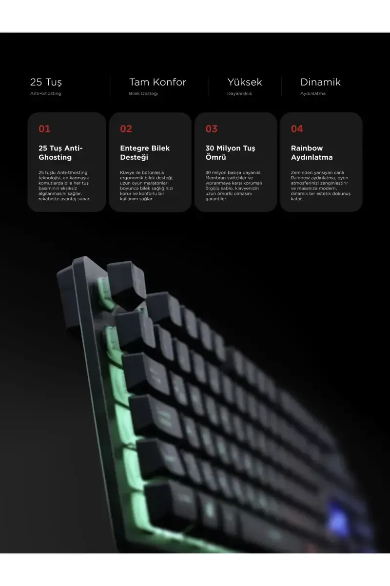 - 1 x Kb-rx77 Runner Q Bilak Tayanchli Gaming Klaviatura Qora Usb Rainbow Yoritilgan