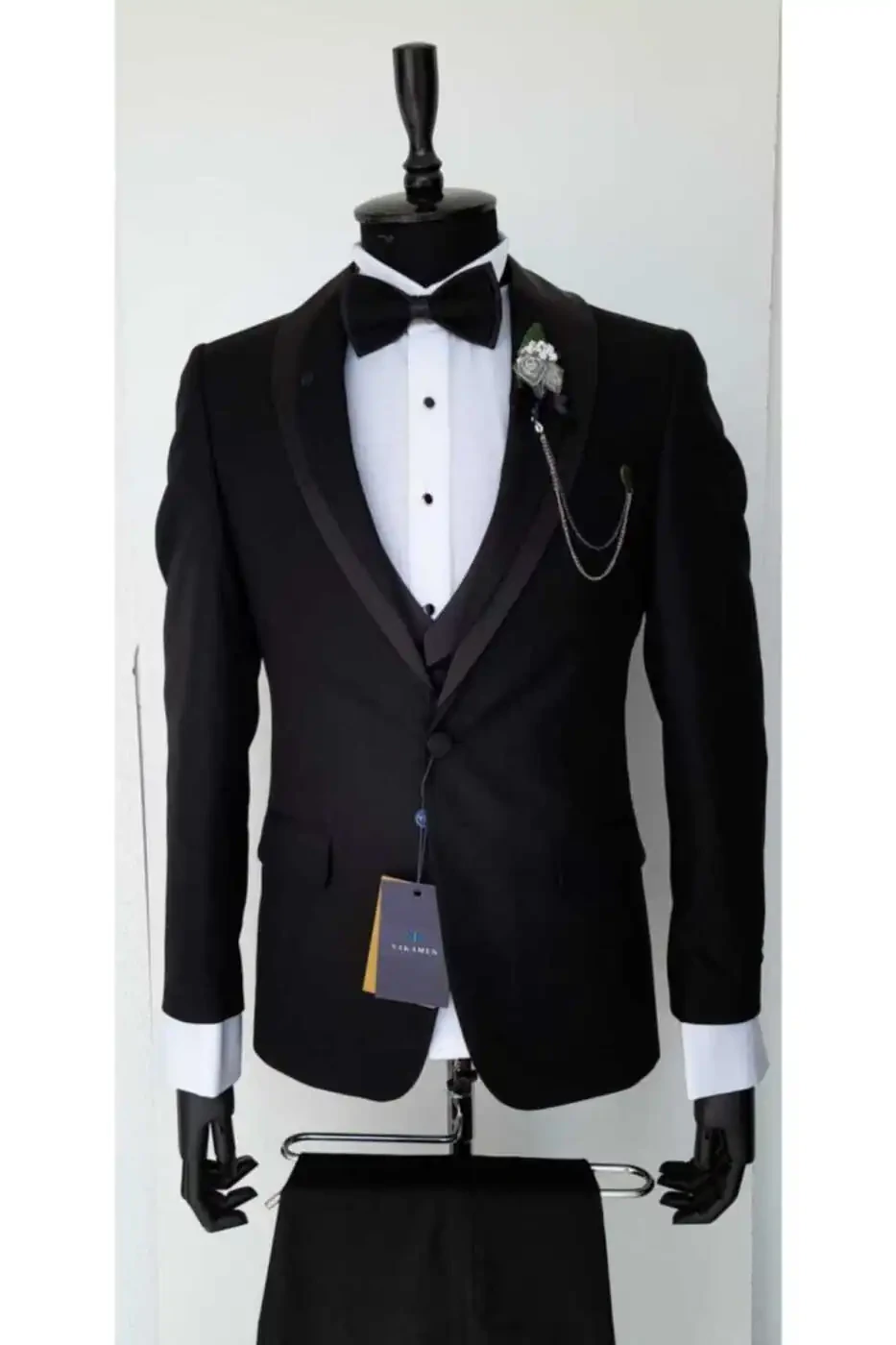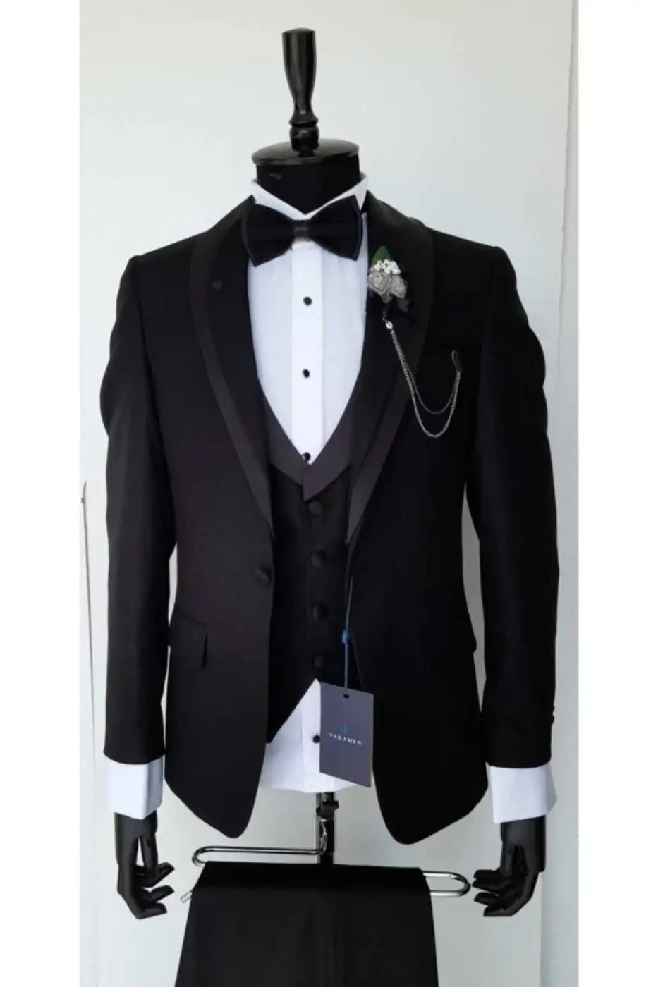 Maxsus kuningizda mukammal ko'rinish uchun mo'ljallangan, nafis va zamonaviy kostyum qidiryapsizmi, Damatlik Jiletli Qora Slim Fit Kostyumimiz aynan siz uchun! Qora rangning vaqtinchalik nafisligi va slim fit kesimi bilan bu kostyum sizni mukammal tarzda ta'kidlab, jiletning qo'shgan detali bilan uslubingizni to'ldiradi.