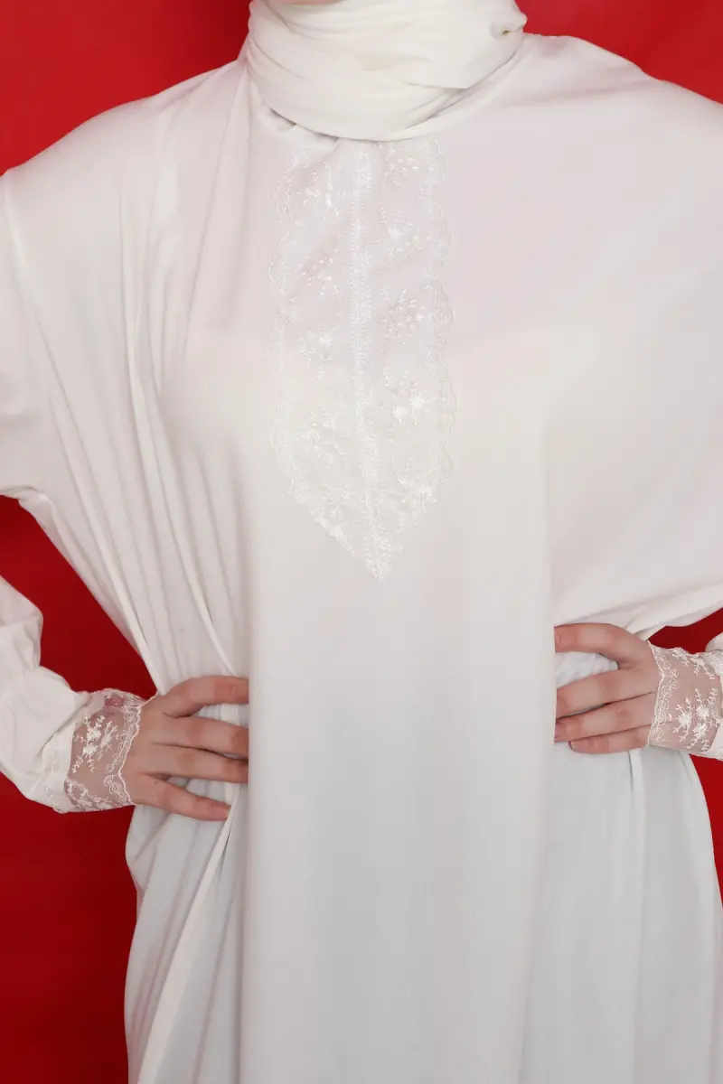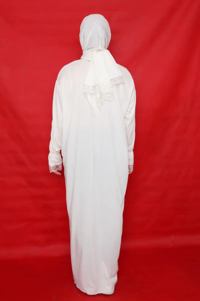 Kendinden Şallı Kadın Tesettür Namaz Elbisesi-beyaz