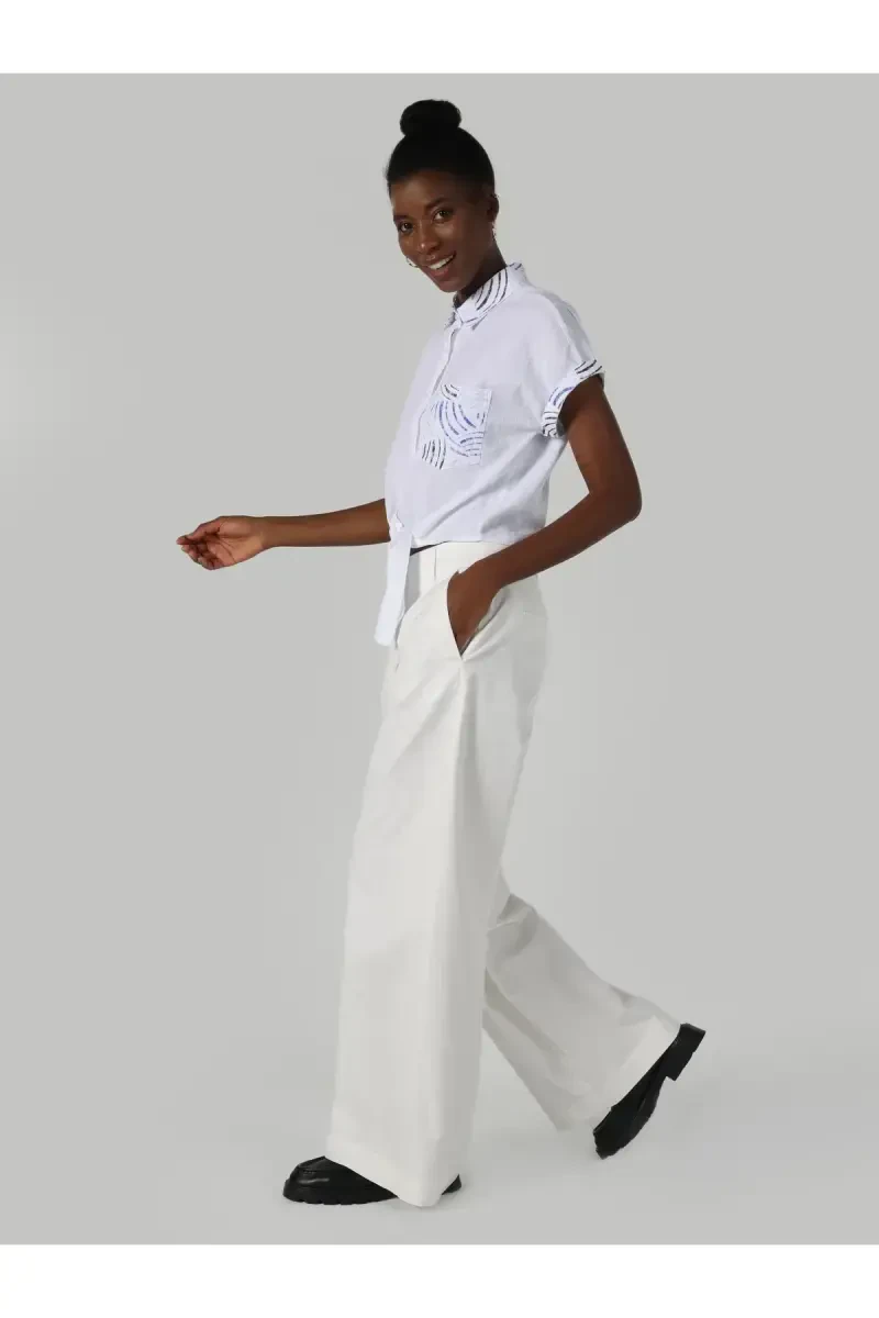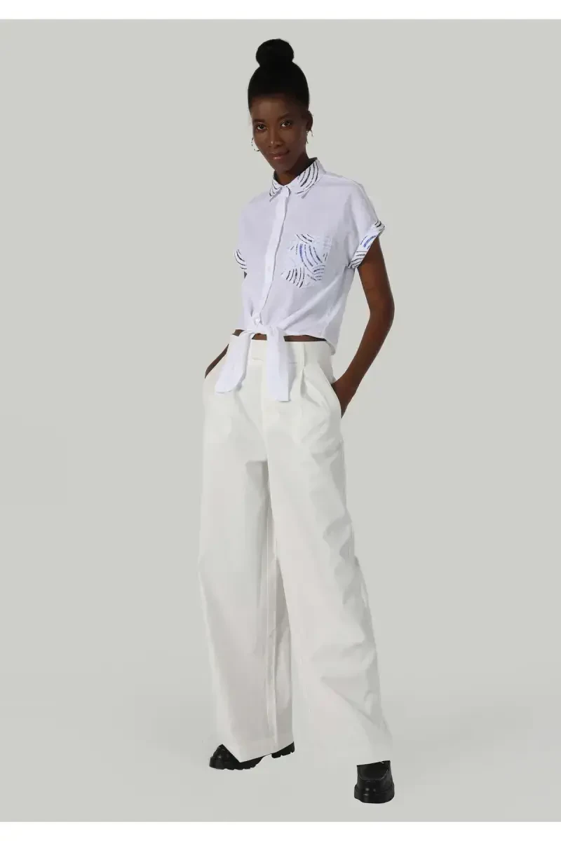 Uslub va qulaylikni birlashtirgan Oddiy o‘lchamli, keng oyoqli, baland bel qilib tikilgan oq ayollar shim sizning kiyim-kechak shkafingizning ajralmas qismi bo‘ladi. Yumshoq va nafas oladigan matodan tikilgan bu shim butun kun davomida qulaylikni taqdim etadi, keng oyoqlari va baland beli esa ayollik silueti yaratadi. Oq rang tufayli bu shim har qanday kombinatsiyaga osongina mos keladi va sizga kundalik hayotdan tortib maxsus tadbirlargacha har qanday muhitda zamonaviy ko‘rinish yaratishga yordam beradi.