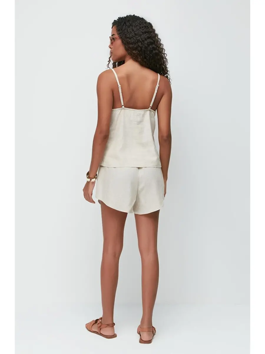 Ürünümüz yüksek kaliteli keten kumaştan üretilmiştir. Uzun ömürlü kullanım için lütfen etiket üzerindeki yıkama talimatlarına uyunuz. Renkli ürünlerde ilk yıkamada renk solması yaşanabilir, bu durum ürünün kalitesini etkilemez. Modelin üzerindeki beden S/36'dır. Çekimlerde kullanılan ışıklandırmadan dolayı renklerde ton farklılığı olabilir.