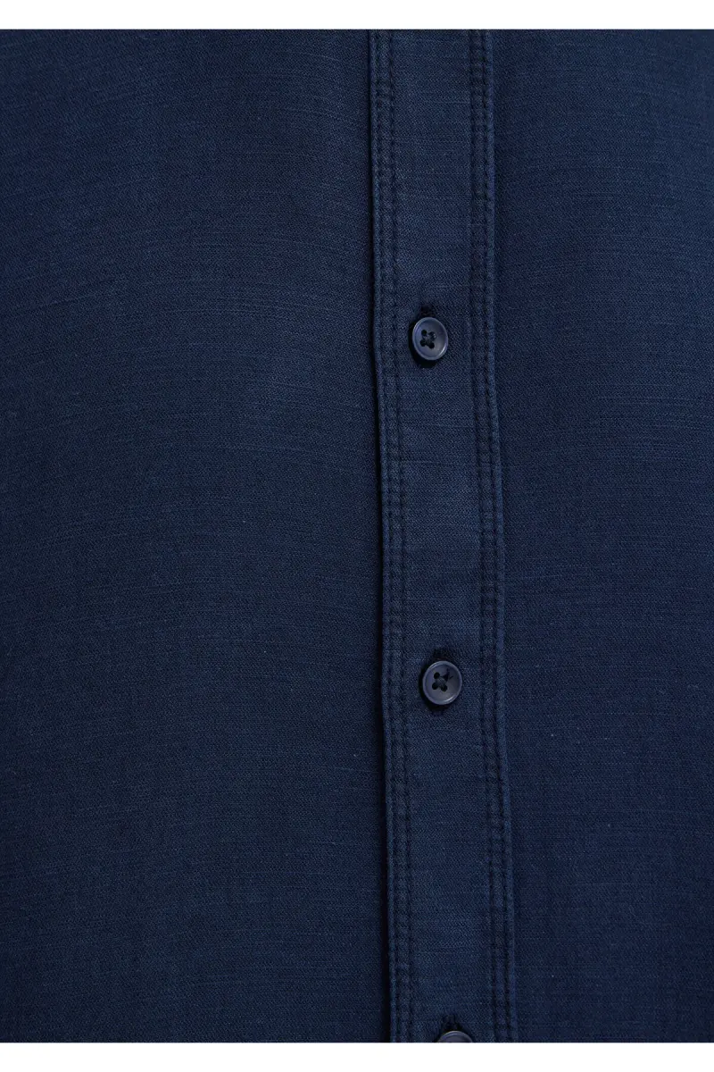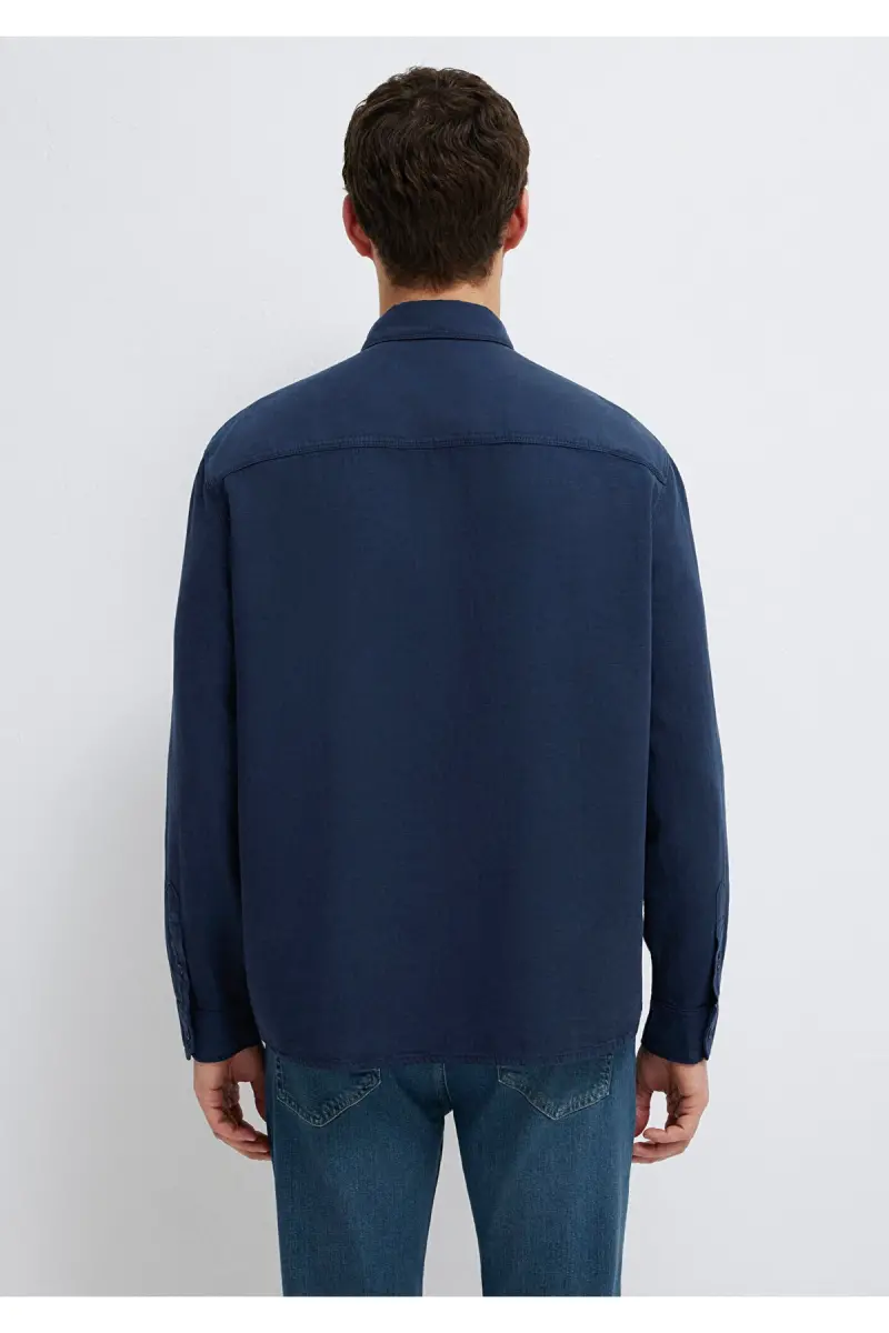 Keten Karışımlı Lacivert Tencel TM Liyosel Gömlek Regular Fit / Normal Kesim 0211482-70490-Lacivert