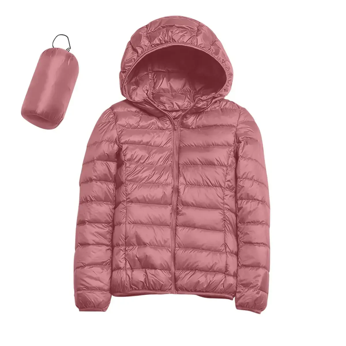 Keusn Kadın Katlanabilir Şişme Mont Hafif Puffer Mont Kapüşonlu Kışlık Mont Pembe S