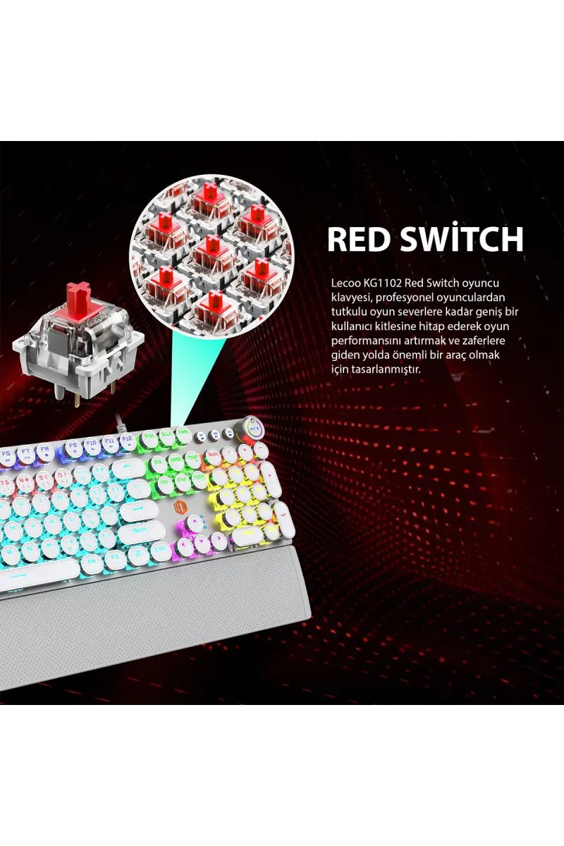 Gaming Klavye, Mekanik Klavye, RGB Klavye, Red Switch, Makro Tuşlu, Türkçe Q, Metalik Klavye, USB Klavye, Oyuncu Klavyesi, KG1102