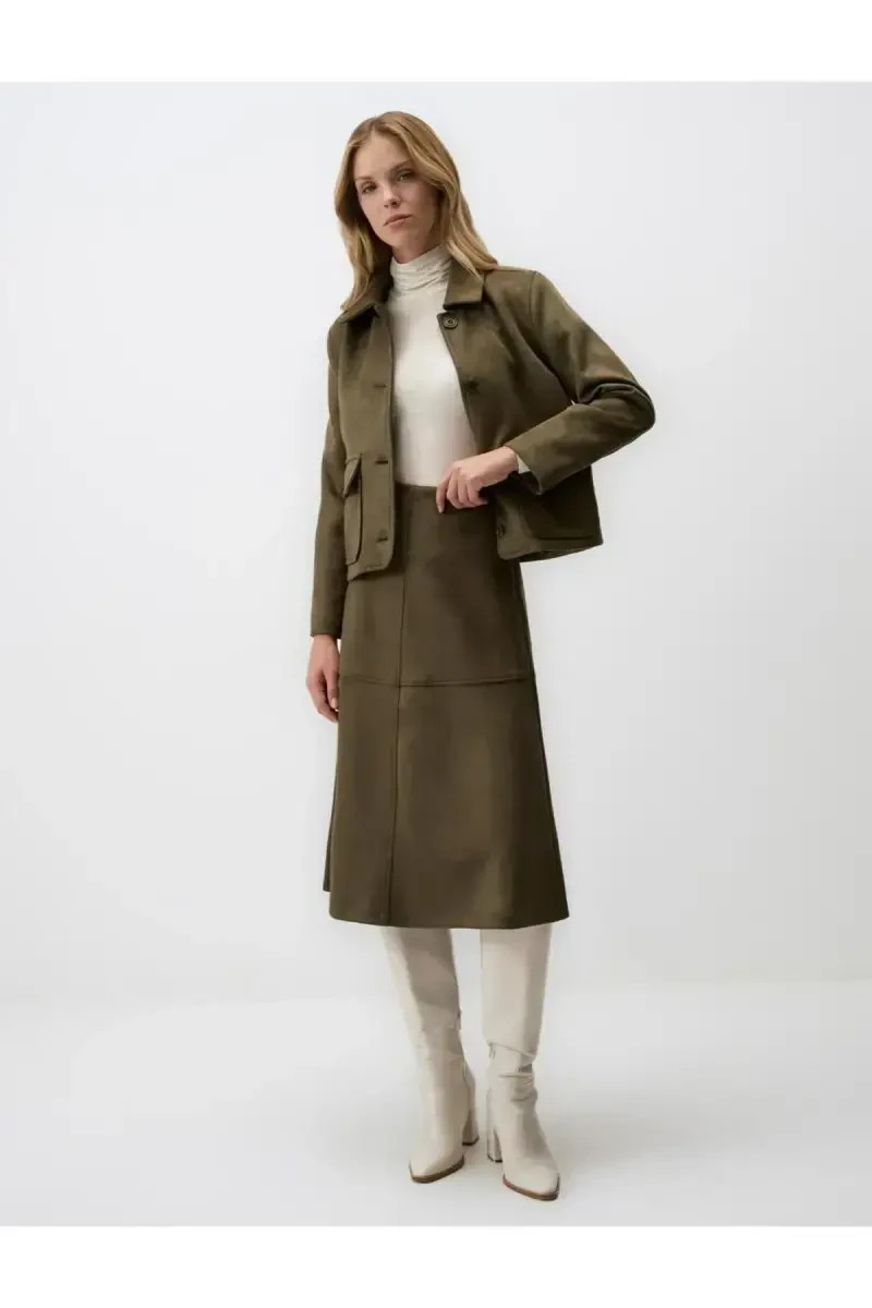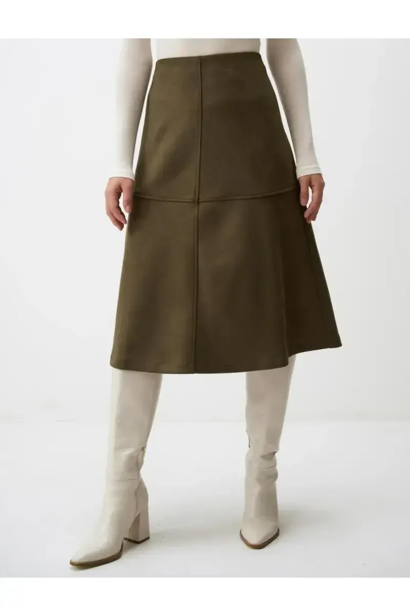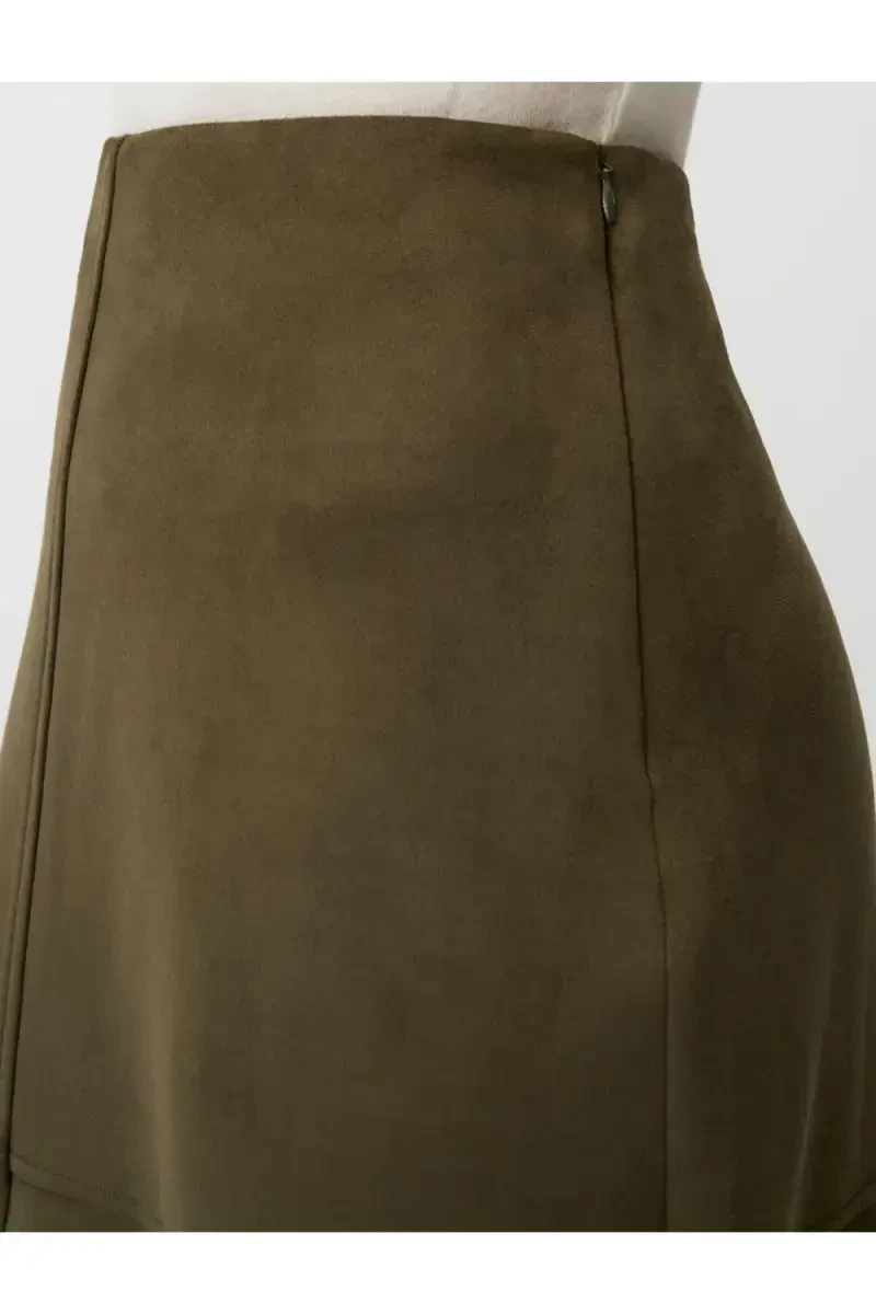 Meet the Khaki Relaxed Fit Knit Velvet Midi Skirt, a must-have for autumn and winter! This skirt, which will allow you to feel comfortable without sacrificing your elegance, offers all-day comfort with its soft knitted velvet fabric and relaxed cut. Its midi length and khaki color make a perfect match with all kinds of tops and shoes. Whether in daily life or on special occasions, you will always look stylish and elegant with this skirt. The high-waisted design makes your waist look slimmer and your legs longer. The knitted velvet fabric gives the skirt a luxurious look while keeping you warm. You can create different styles by combining this skirt with sweaters, blouses, shirts and t-shirts. You can personalize your look by completing it with boots, booties or heels. The khaki color reflects the tones of nature, adding a calm and peaceful atmosphere to you. Whether you're walking among the autumn leaves or having a coffee in a warm place in winter, you'll always feel stylish and comfortable in this skirt. This product is in stock in limited quantities at a special campaign price for you! Order now before it's gone and own one of the indispensable pieces of your wardrobe. Add elegance and comfort to your style with this unique skirt. With Jimmy Key quality and Trendyol assurance!