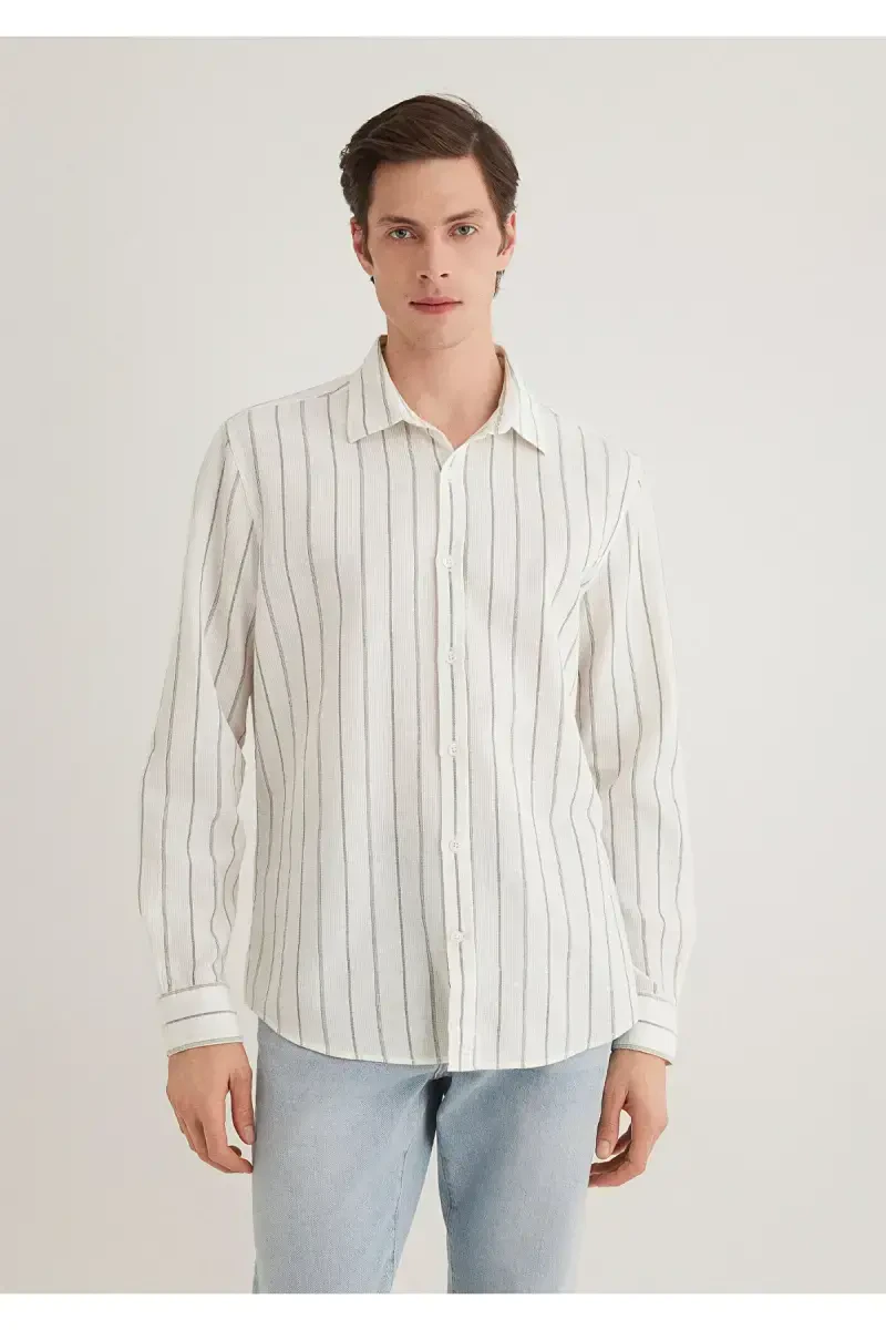 Add a different touch to your style with the Khaki Striped Shirt Regular Fit / Normal Cut 021! This stylish shirt from Mavi's men's collection will accompany you in every environment, from your daily use to your special moments. Thanks to its regular fit / normal cut, it fits you perfectly, while its long-sleeved design offers both a stylish and comfortable use. This shirt, enlivened with the elegant stripes of khaki color, is a candidate to be one of the indispensable pieces of your wardrobe. The knitted fabric used in its production allows your skin to breathe and makes you feel comfortable all day long. Produced in Turkey, this quality shirt offers durability and elegance together. This shirt, which attracts attention with its stance on the mannequin, is designed to adapt to different body types. The Khaki Striped Shirt, which is easy to combine, will achieve a perfect harmony with many different bottom wear products, from your jeans to your chino pants. It is an ideal choice for men who want to create both a sporty and classic style. By choosing this product, you can highlight both your elegance and your comfort. This special design shirt, offered with the assurance of TERCİH GİYİM, is offered to the liking of stylish men. Remember, your style is your identity and this shirt will help you reflect your identity in the best way. You can easily combine it with other pieces in your wardrobe and create different styles. You can always look stylish and well-groomed with the Khaki Striped Shirt. With Mavi quality and TERCİH GİYİM assurance, you can enjoy using this shirt for many years. A perfect choice for men looking for elegance and comfort together.