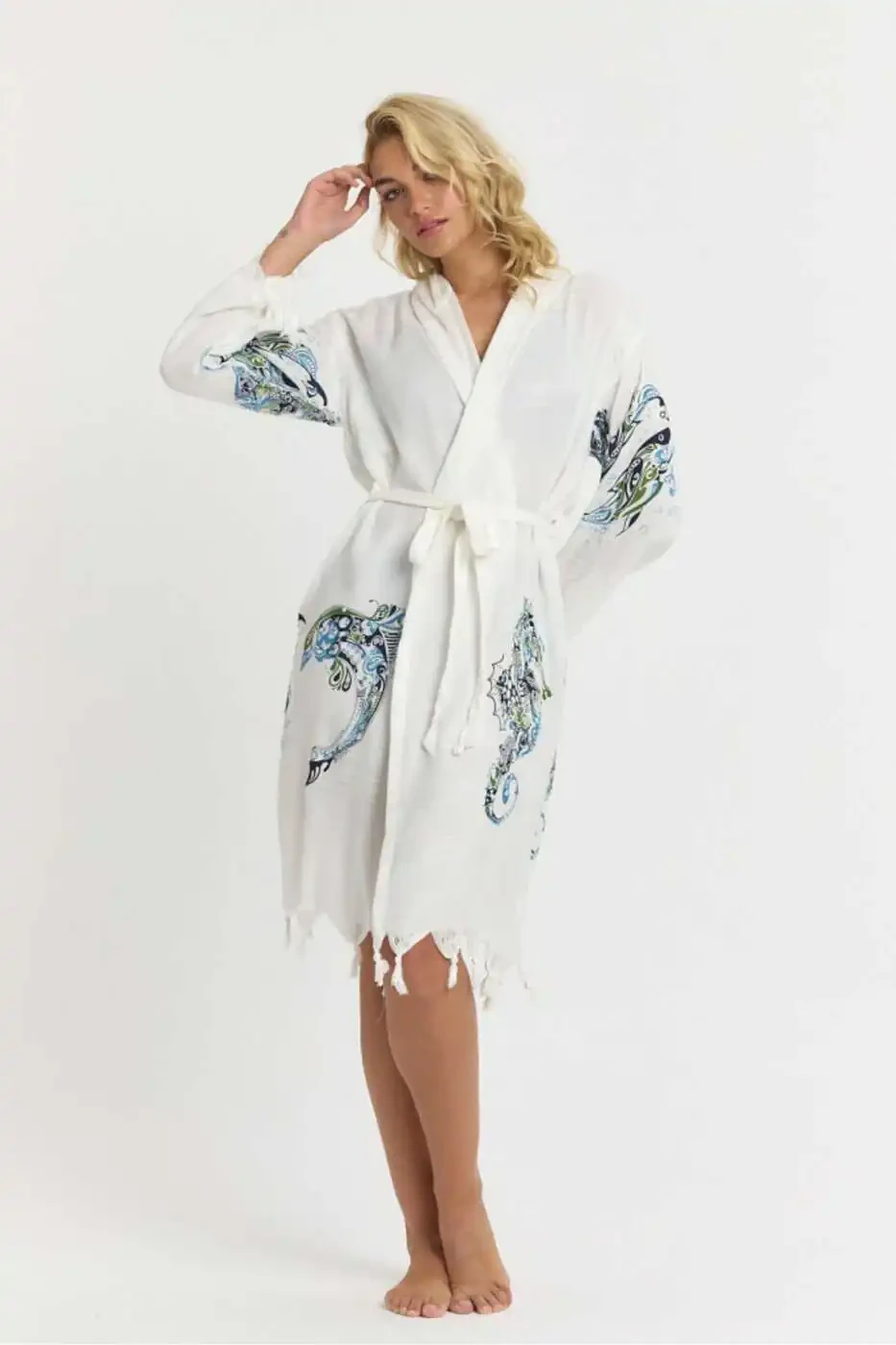 Незаменимый элемент летнего гардероба, пляжное платье-халат Kiana из бамбука с рисунком, сочетает в себе элегантность и комфорт благодаря своему уникальному дизайну. Изготовленное из бамбуковой ткани, приятной на ощупь и шелковистой на коже, это платье поможет вам оставаться прохладной в жаркие летние дни, а его изящный рисунок дополнит ваш стиль. Идеально подходящее для пляжа, бассейна или отдыха дома, платье Kiana является универсальной вещью, которая может использоваться как пляжное платье, так и халат. Благодаря своим впитывающим свойствам, подобным полотенцу, оно быстро сохнет, а свободный крой обеспечивает комфорт в течение всего дня. Стильный и современный дизайн позволит вам выглядеть сногсшибательно на пляже или у бассейна. Это прекрасный вариант не только для пляжа, но и для отдыха дома, использования в спа-салонах или для создания прохладного и элегантного образа летними вечерами. Приготовьтесь наслаждаться летом, чувствуя себя стильно и комфортно с пляжным платьем-халатом Kiana из бамбука с рисунком. Побалуйте себя натуральной воздухопроницаемостью и мягкостью высококачественной бамбуковой ткани. А его уникальный рисунок будет завораживать вас в любой момент. Выбирайте из различных вариантов расцветок и создайте свой неповторимый стиль, чтобы сделать ваши летние дни ещё приятнее. Благодаря качественному пошиву и долговечности, Kiana станет любимой вещью в вашем гардеробе.