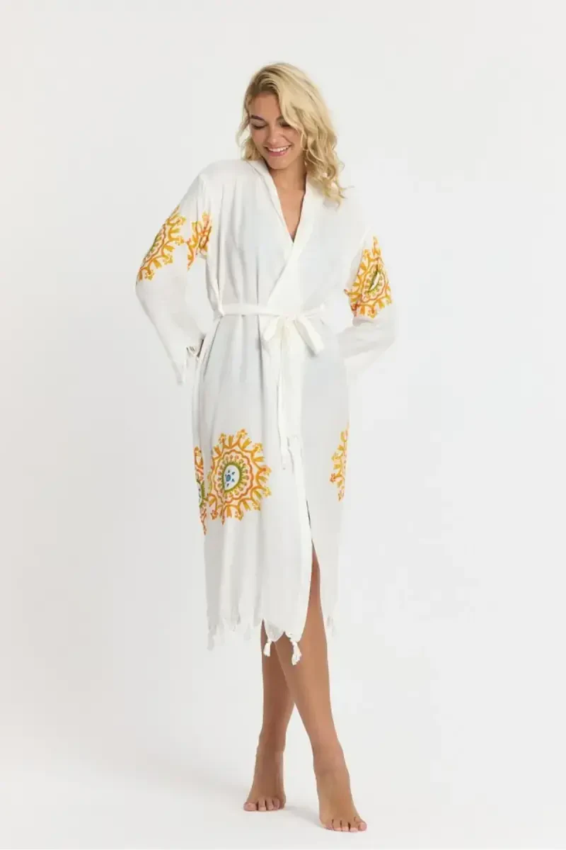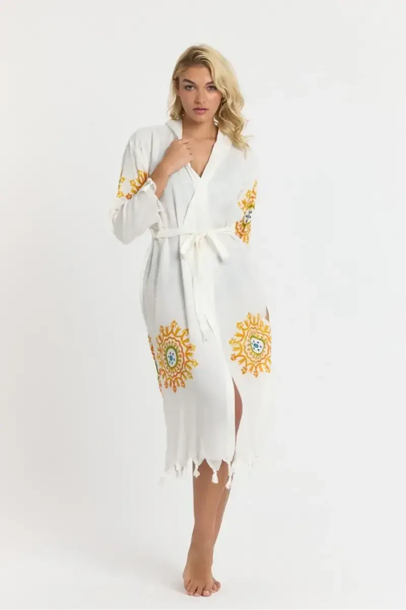 Kiana bambuk ayollar xalatli plyaj ko'ylagi issiq yoz kunlarida sizning nafisligingizni to'ldiradigan va qulayligingizdan voz kechmasdan dam olishga imkon beradigan ideal tanlovdir. Xoh plyajda quyosh botish, xoh hovuz bo'yida dam olish, xoh vannadan keyin uyingizda dam olish, bu xalatli plyaj ko'ylagi sizga hamroh bo'ladi. Standart o'lchamdagi dizayni tufayli har qanday tana turiga mukammal mos keladigan ushbu mahsulot bizning plyaj to'qimachilik kollektsiyamizning sevimli qismlaridan biridir. Dengiz bo'yida va hovuz bo'yida o'tkazgan lahzalaringizni yanada yoqimli qiladi, shu bilan birga sizga zamonaviy va zamonaviy ko'rinish beradi. Kiana bambuk ayollar xalatli plyaj ko'ylagi nafaqat plyaj kiyimi, balki sizning uslubingizni aks ettiruvchi ifoda hamdir. Yuqori sifatli to'quv mato konstruktsiyasi uzoq muddatli foydalanish uchun chidamlilik va yumshoqlikni ta'minlaydi. Teringizga muloyimlik bilan tegib, ayni paytda terlamaydigan tuzilishi bilan kun bo'yi o'zingizni tetik his qilishingizga imkon beradi. Kaputli yoqa dizayni quyoshning zararli nurlaridan himoya qilishga yordam beradi va uslubingizga boshqacha havo beradi. Kaputli dizayn, ayniqsa issiq havoda amaliy foydalanishni ta'minlaydi va boshingizni quyoshdan himoya qilib, qulayligingizni oshiradi. Uning bosma naqshlari plyaj modasiga mos keladigan detallarni qo'shib, jozibali ko'rinish yaratadi. Naqshli sariq rang energiyali va jonli uslubni ifodalaydi, shu bilan birga plyaj muhiti bilan mukammal uyg'unlikni ta'minlaydi. Beachwear kollektsiyamizning ushbu maxsus qismi plyajda erkin harakatlanish erkinligini taklif etadi. Xoh piyoda yurish, xoh quyosh botish, xoh suv sporti bilan shug'ullaning, Kiana bambuk ayollar xalatli plyaj ko'ylagi har doim sizga qulaylik va harakat erkinligini ta'minlaydi. Uzun qisma dizayni yoz oylarida salqinlik hissini beradi, Regular kalıbı esa tanani quchoqlaydigan, ammo siqmaydigan tuzilishga ega. Shu tarzda, siz kun bo'yi qulay foydalanish tajribasiga ega bo'lasiz. 30 daraja yuvish bo'yicha ko'rsatmalarga muvofiq uni osongina tozalash va parvarish qilish mumkin. Ushbu xususiyat mahsulotning uzoq umr ko'rishini ta'minlaydi, shuningdek, sizga foydalanish qulayligini ta'minlaydi. Kiana bambuk ayollar xalatli plyaj ko'ylagi bilan siz nafaqat zamonaviy va qulay bo'lasiz, balki sifatli va bardoshli mahsulotga ega bo'lishdan ham zavqlanasiz. Ushbu maxsus dizayn sizning plyaj uslubingizni to'ldiradi va har doim sizga ishonch bag'ishlaydi. Plyajda, hovuzda yoki uyingizda Kiana bambuk ayollar xalatli plyaj ko'ylagi bilan har bir lahzadan zavqlaning.