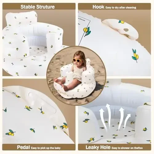 Inflatable Baby Chair, bebeğinizin güvenliğini ve konforunu ön planda tutan, çok yönlü bir üründür. Kolay kullanımı ve taşınabilirliği sayesinde her ortamda bebeğinizin yanında olabilir. Ürünün temizliği nemli bir bezle kolayca yapılabilir. Kullanım kılavuzunu dikkatlice okuyarak, ürünün doğru ve güvenli bir şekilde kullanıldığından emin olun. Bebeğinizin güvenliği için, ürünü kullanırken daima gözetim altında bulundurun.