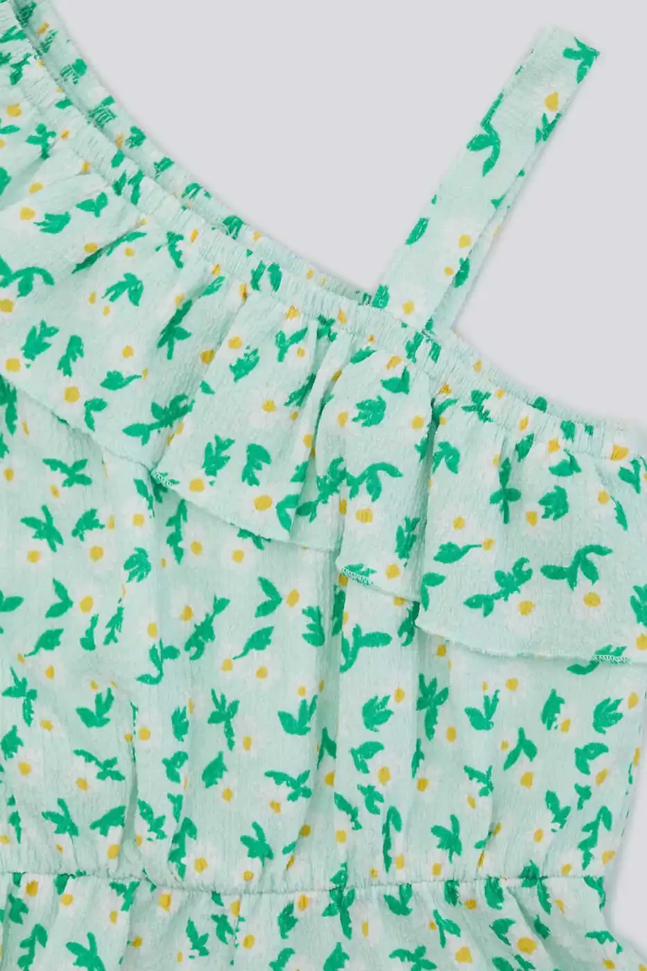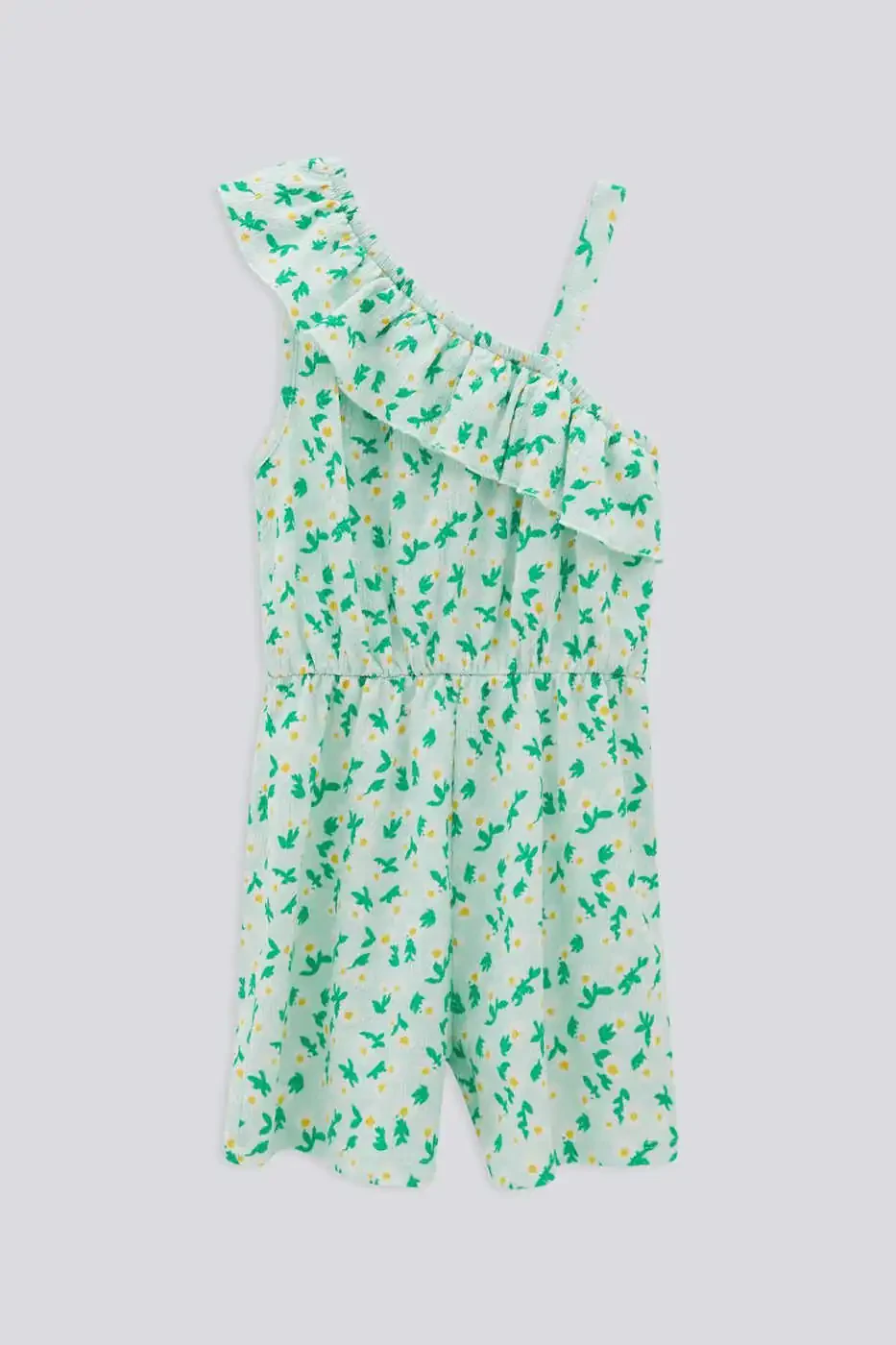 Qizining uslubini aks ettiradigan va unga o'ziga ishonch baxsh etadigan KİDS GİRL Gullari Assimetrik Yengli Shortli Jumsuit bilan issiq yoz kunlarida zamonaviy ko'rinish hosil qiling.