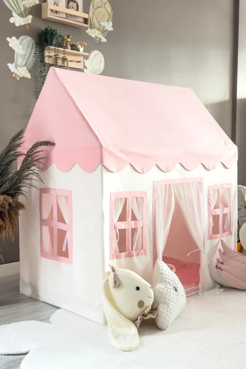 Kids Play House Pink Play Tent is an excellent option to enhance children's imagination and offer them the opportunity to create their own private play areas. This adorable pink play tent provides a safe and enjoyable environment for children to spend time both indoors and outdoors. It is made of high-quality materials, prioritizing durability and safety.**Product Description**The world of children is full of dreams and games! Would you like to offer them a special area where they can build their own kingdoms, embark on adventures with their friends, read books, or just relax? Introducing the Pink Kids Play House Play Tent! This adorable play tent helps children unleash their imagination and develop their creativity, while also providing them with a safe and fun play environment. This play tent, which will steal the heart of every child with its pink color and cute design, is made of high-quality materials and is designed for long-lasting use. Whether you use it at home, in the garden or in the park; The Pink Children's Play House Play Tent will be your child's favorite playground. It is ready for use in minutes thanks to its easy installation and you can easily take it anywhere thanks to its practical carrying bag. Don't miss this wonderful play tent to make your children's play hours more fun and creative! Give them an unforgettable gift and help them make their dreams come true. The Pink Children's Play House Play Tent is not only a playground, but also helps children socialize, develop their problem-solving skills and increase their self-confidence. While playing in this tent, children create their own stories, take on roles and push the boundaries of their imagination. As parents, supporting our children to grow up healthy and happy is one of our most important duties. The Pink Children's Play House Play Tent is a great tool that serves this purpose. While contributing to your child's development, it also offers them the opportunity to collect enjoyable and unforgettable memories. This play tent will make your children's play hours more meaningful and valuable. Get the Pink Children's Play House Play Tent now to create a play area full of their laughter and joy, and witness your child's dreams come true! Remember, happy children are a happy future. Invest in your children and contribute to their development. The Pink Children's Play House Play Tent will be the sweetest fruit of this investment. What are you waiting for to see the sparkle in your child's eyes and share their happiness? Place your order and start making your child's dreams come true!**Product Features** * Cute design in pink color * High quality and durable material * Easy installation and practical carrying * Suitable for indoor and outdoor use * Develops children's imagination * Provides a safe and fun play environment * Lightweight and portable * Helps children socialize * Develops problem-solving skills * Increases their self-confidence**Additional Information**The play tent is designed with children's safety in mind. It is made of non-toxic materials and is easy to clean. The product is shipped disassembled and includes an installation guide.