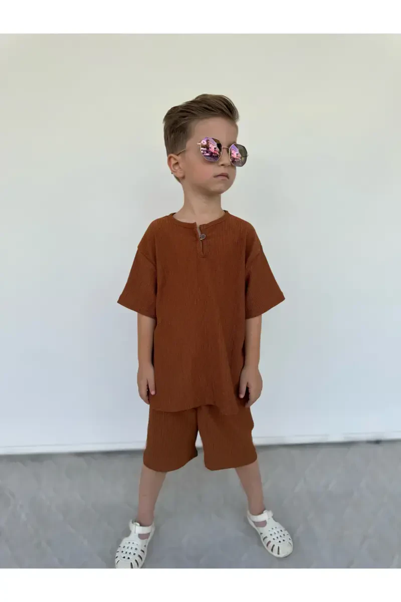 Kids Summer T-Shirt Set - Taupe is a comfortable and stylish option that will be indispensable for summer months. This set is made of high-quality cotton fabric, so it gently touches your child's skin and provides comfort throughout the day. The lightweight and breathable structure of the t-shirt prevents sweating in hot weather and helps your child stay cool. The elastic waistband of the shorts allows them to be easily put on and taken off and does not restrict your child's movements. The earthy tones of taupe color reflect naturalness and warmth, revealing your child's energy and joy. This set can be easily used in the playground, picnic or daily outings. Thanks to its stylish design, it can also be preferred for special occasions. Kids Summer T-Shirt Set - Taupe wins the appreciation of mothers and fathers by offering both practicality and aesthetics together. Moreover, the durable structure of the set allows for long-term use and is resistant to frequent washing. It is a reliable product that does not contain any substances that will harm your child's health. This set will be one of the must-haves of your child's summer wardrobe and will give them a unique style. The timeless elegance of taupe color can be easily combined with different accessories. For example, by complementing it with a colorful hat or sandals, you can further highlight your child's style. Kids Summer T-Shirt Set - Taupe is not just a piece of clothing, but also a lifestyle that supports your child's freedom and comfort. With this set, your child will enjoy the summer while always looking stylish and well-groomed.