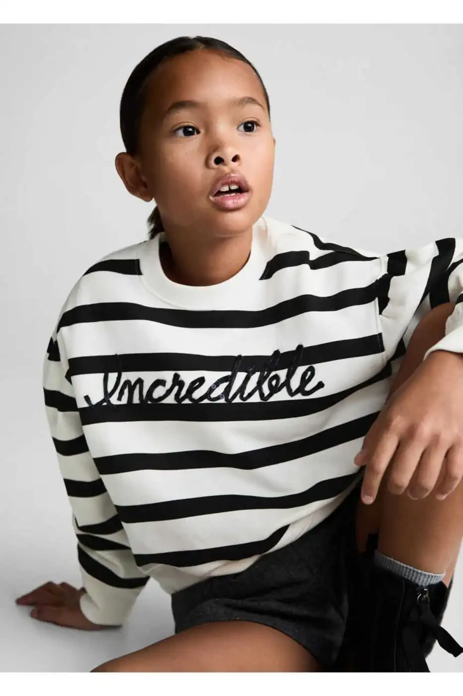 **Kids Sweatshirt**This kids sweatshirt, shipped by KORCAN&KORHAN YILDIZ, is available for sale at a discounted price with limited stock. It may be sold by multiple vendors and is ranked based on price, vendor ratings, delivery status, promotions, free shipping, fast delivery, stock availability, and product category.You can order a maximum of 10 units of this product. Trendyol reserves the right to cancel orders exceeding 10 units. This limit does not apply to corporate orders, which may have different limits.Enjoy free returns within 15 days. For more information, please **click here**.**Features:*** **Model:** camila* **Material:** 100% cotton* **Pattern:** Plain, striped* **Heel:** Open* **Collar:** Round* **Sleeve:** Long* **Closure:** None* **Detail:** Beaded**Dimensions:*** Back length: 55.5 cm**Care Instructions:*** Machine wash at max. 30°C* Do not bleach* Iron at max. 110°C* Do not dry clean* Do not tumble dry