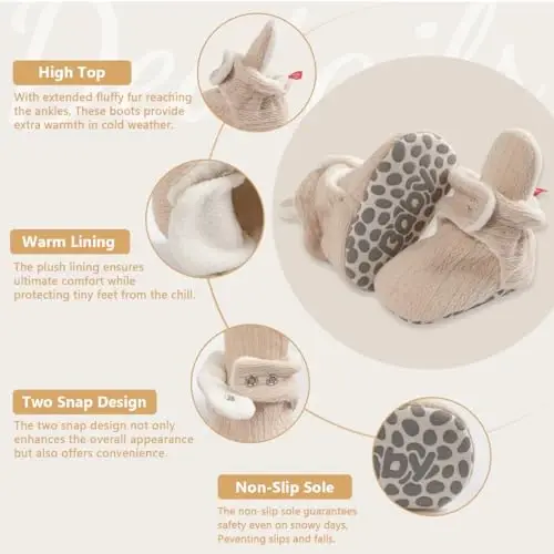 KIDSUN Bebek Erkek Kız Çocuk Polar Patik, yeni doğan bebekler için tasarlanmış, konforlu ve sıcak tutan bir seçenektir. Bu şık ve kullanışlı panduf ayakkabılar, bebeğinizin ayaklarını kış aylarında sıcak tutarken, kaymaz tabanı sayesinde güvenli bir yürüyüş deneyimi sunar. Yumuşak ve sıcak pamuklu astarı, bebeğinizin ayaklarının kuru ve nefes alabilir kalmasını sağlar. Esnek bilek kısmı, 0-18 aylık bebeklerin ayaklarına rahatça oturur ve hareket özgürlüğü sunar. Farklı beden seçenekleri (4 3/8, 4 3/4, 5 1/8) ile bebeğinizin ayaklarına en uygun boyutu bulabilirsiniz. Bu patikler, bebeğinizin ahşap veya fayans zeminlerde kaymasını engelleyen özel bir tabana sahiptir. KIDSUN bebek patikleri, çalkalayıcı polar üst yüzeyi ile üretilmiştir ve bebekler ile küçük çocuklar için idealdir. Yenidoğan patikleri, anti-slip tabanı ve bebek çorabı tasarımı ile günlük kullanım için mükemmeldir. Giymek, kavramak, ilk adımları atmak ve kreş ortamında kullanmak için idealdir. Hafif, konforlu, esnek ve elastik yapısı, bebeğinizin doğal ayak hareketlerini destekler. Kolayca giyilebilir ve çıkarılabilir çıtçıtlı tasarımı sayesinde pratik bir kullanım sunar. Bu bebek botları, çıplak ayak hissi verir ve panduf veya çorap olarak kullanılabilir. Ayakta kalır ve bebeğinizin ayaklarını sıcak tutar, böylece sürekli olarak düşen çorapları toplama derdinden kurtulursunuz. Yeni doğan bebekler için oldukça kullanışlı olan bu patikler, kreş botları ve ev ayakkabıları olarak da kullanılabilir. Yeni doğan bebek partileri için harika bir hediye seçeneği olan bu şık ve sevimli bebek botları, bebeğinizin ilk doğum günü, partisi veya aile törenleri için de idealdir. Hamile anneler, yeni doğmuş bebekler veya yürümeyi yeni öğrenen bebekler için en iyi seçimdir! Doğum günleri, arkadaş partileri veya aile törenleri için mükemmel bir hediyedir. KIDSUN unisex polar patikler, her bebeğin dolabında olması gereken bir üründür. Lütfen beden tablosuna dikkat edin ve sipariş vermeden önce bebeğinizin ayaklarını ölçün. Yaş sadece referans amaçlıdır.