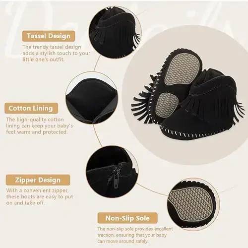 Представляем KIDSUN Infant Baby Boy Girl Cozy Fleece Bootie - сочетание комфорта и стиля, которое согреет маленькие ножки в зимние месяцы! Эти милые ботинки в виде тапочек подойдут для всех возрастных групп, от новорожденных до малышей, делающих свои первые шаги. Благодаря мягкой текстуре и теплой конструкции ножки вашего ребенка будут чувствовать себя комфортно в течение всего дня. Идеальный выбор для будущих мам, новорожденных или тех, кто ищет первую обувь для ходьбы! Детские ботинки KIDSUN легко надеваются и снимаются благодаря практичному дизайну. Удобный механизм застежки сбоку обеспечивает надежную фиксацию ботинок на ногах вашего ребенка. Самое главное, они не ограничивают свободу движений малышей и устраняют риск скольжения с ног. Эти ботинки значительно облегчат вашему ребенку процесс самостоятельного одевания. KIDSUN Infant Baby Boy Girl Cozy Fleece Bootie не только согревают, но и ставят во главу угла безопасность вашего ребенка. Нескользящие резиновые полоски на подошве помогают ребенку сохранять равновесие и сводят к минимуму риск падения. Благодаря этому малыши могут уверенно делать первые шаги и комфортно передвигаться по дому. Эти ботинки, подходящие как для девочек, так и для мальчиков, благодаря своему универсальному дизайну, также привлекают внимание своим стильным и милым внешним видом. Это прекрасный аксессуар, который дополнит наряд вашего ребенка на особых мероприятиях, таких как рождение ребенка, вечеринки с друзьями или семейные встречи. KIDSUN Infant Baby Boy Girl Cozy Fleece Bootie можно рассматривать не только как обувь, но и как вариант подарка. Вы можете сделать незабываемый сюрприз своим близким, которые стали мамами, или друзьям, которые ждут ребенка, с помощью этих полезных и стильных ботинок. Эти тапочки, которые обязательно должны быть в гардеробе каждого ребенка, являются идеальным выбором для комфорта и здоровья вашего ребенка. Помните, возраст - это всего лишь ориентир. Пожалуйста, ознакомьтесь с таблицей размеров и убедитесь, что вы выбрали правильный размер, измерив ногу вашего ребенка перед заказом. С качеством KIDSUN ножки вашего ребенка всегда будут в безопасности и тепле!