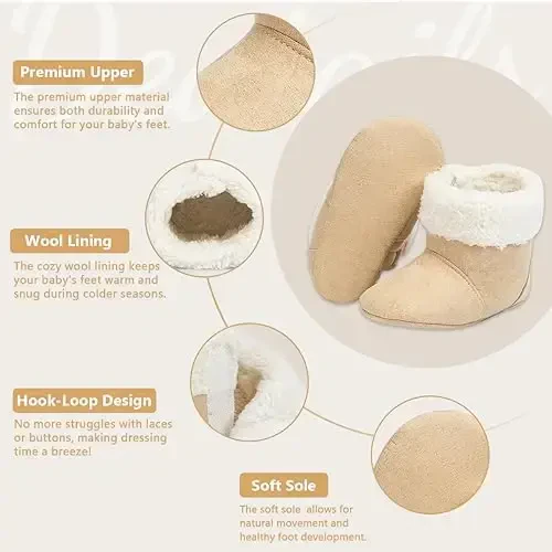 Представляем вам KIDSUN Infant Baby Boy Girl Cozy Fleece Bootie, сочетающие в себе комфорт и безопасность, чтобы согреть крошечные ножки в зимние месяцы! Эти милые ботинки-пинетки идеально подходят для младенцев всех возрастов, от новорожденных до малышей, делающих первые шаги. Благодаря мягкой внутренней подкладке из искусственного меха (искусственной овчины) ножки вашего ребенка будут оставаться теплыми и удобными в течение всего дня. Они защищают нежную кожу вашего ребенка в холодные зимние дни, а также обеспечивают стильный и милый вид. Пинетки KIDSUN также выделяются своим удобным дизайном. Благодаря удобной застежке-липучке сбоку вы можете легко надевать и снимать пинетки. Вы можете с уверенностью использовать пинетки в подвижном мире вашего ребенка, не беспокоясь о том, что они соскользнут с его ног. Система застежки-липучки обеспечивает надежную фиксацию пинеток на ногах вашего ребенка, помогая ему чувствовать себя комфортно во время игр или ползания. Этот дизайн, облегчающий жизнь матерям, также поддерживает обретение независимости младенцами. Безопасность младенцев всегда является нашим приоритетом. Поэтому подошва пинеток KIDSUN имеет противоскользящие резиновые полоски. Эти полоски помогают вашему ребенку сохранять равновесие и делать более безопасные шаги на скользкой поверхности. Эта функция, разработанная специально для младенцев, делающих первые шаги, повышает уверенность вашего ребенка в себе и поддерживает его стремление к познанию. Эти пинетки, которые можно безопасно использовать в помещении и на улице, ставят во главу угла комфорт и безопасность вашего ребенка. KIDSUN Infant Baby Boy Girl Cozy Fleece Bootie не только согревает, но и является стильным аксессуаром. Благодаря универсальному дизайну они подходят как для девочек, так и для мальчиков. Эти пинетки, доступные в различных цветовых вариантах и подходящие к любому стилю, станут незаменимой частью гардероба вашего ребенка. Эти пинетки, которые также являются прекрасным подарком для новорожденных, порадуют будущих мам и молодых родителей. Эти пинетки, которые дополнят элегантность вашего ребенка на детских праздниках, днях рождения или семейных посиделках, будут сопровождать незабываемые моменты. Компания KIDSUN заботится о здоровье и комфорте вашего ребенка. Поэтому все материалы, используемые в нашей продукции, тщательно отобраны. Эти пинетки, изготовленные из качественных и долговечных материалов, не вредящих нежной коже вашего ребенка, обеспечат длительный срок службы. Пинетки KIDSUN, которые вы можете смело выбирать для здоровья вашего ребенка, также успокоят матерей. При выборе размера, пожалуйста, ознакомьтесь с нашей таблицей размеров и выберите правильный размер, учитывая размер ноги вашего ребенка. Помните, комфорт и безопасность вашего ребенка для нас превыше всего.