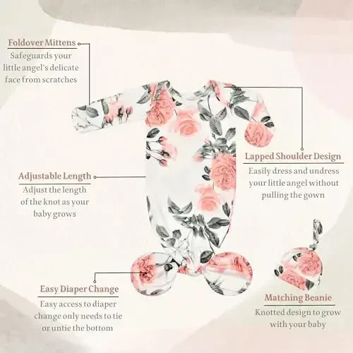 Giggle Angel Newborn Baby Swaddle Sleep Sack - Knotted Swaddle Baby Girl Take Home Outfit - 2-Piece Set with Hat combines your baby's comfort and style! This sleep sack and hat set, specially designed for your little angel's delicate skin, offers a comfortable sleep experience and provides a dazzling look for special occasions. Thanks to its high-quality material content and practical design, it makes mothers' lives easier while supporting babies to feel peaceful and happy.This special set is made of 95% polyester and 5% spandex blend. In this way, it gently touches your baby's skin, minimizes the risk of allergies and offers comfortable use throughout the day. The durability of polyester and the flexibility of spandex come together to create a long-lasting and useful product. The recommended indoor temperature of our product should not exceed 24℃/75℉, thus ensuring your baby's ideal sleep environment.Giggle Angel sleep sack is approximately 70 cm long and has an ideal size for newborn babies. Thanks to its knotted design, it allows your baby to move their legs comfortably while providing a safe and warm environment. The knot at the bottom allows you to change diapers in seconds. Instead of dealing with zippers or snaps while sleepless in the middle of the night, you can easily change their diaper by untying the knot and get the job done without disturbing your baby's peace. In this way, both your baby's sleep will not be interrupted and you will be a happier mother.The flexible collar on the shoulder of the sleep sack makes dressing and undressing easier. You can gently dress and undress your baby without irritating their delicate skin. Foldable cuffs keep your baby's hands warm and prevent them from scratching their face. These details show that we prioritize your baby's safety and comfort.Giggle Angel newborn sleep sack can be used not only as a take-home outfit from the hospital, but also as daily sleep pajamas. It can be a great accessory for photo shoots and can also be preferred as a gift for special occasions or baby shower parties. With its stylish design and useful features, it will be an indispensable product for every mother and baby. Choose Giggle Angel sleep sack to provide your baby with the best care in their first months and to make every moment special. Remember, a happy baby means a happy family!