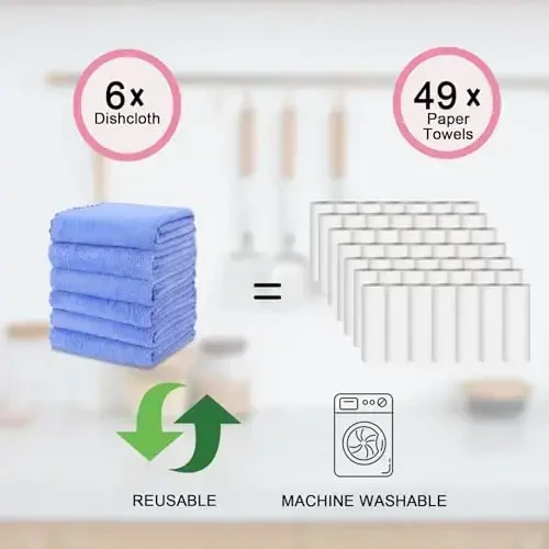 We offer the perfect solution for all your cleaning needs in the kitchen and around your home with Kimteny Kitchen Cloth Dish Towels. These high-quality dish towels are designed to provide you with unparalleled convenience in your daily life. With dimensions of 13x28 inches, these cloths can be easily used on any surface thanks to their practical size. Moreover, they are offered in a pack of 6, ensuring that you always have an adequate number of cloths on hand.The most striking feature of Kimteny dish towels is that they are made of high-quality coral velvet material. This special material ensures that the cloths have exceptional absorbency. They can quickly absorb much more liquid than ordinary cloths. This makes tasks such as cleaning up spills, drying surfaces, or dusting in the kitchen or at home much faster and more effective. In addition, the coral velvet material offers ease of use with its lightweight structure.Another important feature of these dish towels is their quick-drying capability. The cloths dry quickly after use, thus preventing the formation of bacteria and bad odors. This feature ensures that the cloths are used hygienically and have a long lifespan. Kimteny dish towels also stand out with their lint-free construction. Thanks to this, they do not leave lint residue on surfaces while cleaning, which provides a great advantage especially when cleaning glass and shiny surfaces.Kimteny dish towels are versatile cleaning products that you can use not only in the kitchen but also in every corner of your home. They are ideal for many different purposes such as dusting furniture, cleaning windows, polishing cars, or removing stains on electronic devices. Thanks to their high absorbency, they can also be used in kitchen tasks such as straining cheese or drying salad.These dish towels are machine washable. They maintain their quality even after being washed repeatedly, do not shrink, and do not leave lint. This makes them a long-lasting and economical option. Kimteny dish towels are made from natural and chemical-free materials. In this way, it both protects your health and allows you to make an environmentally conscious choice. Thanks to its soft texture that does not harm your skin, you can use it comfortably without irritating your hands.It's like having a magic wand when cleaning in the kitchen or at home! With Kimteny Kitchen Cloth Dish Towels, you can get your work done quickly, easily, and correctly. These high-quality dish towels will make your cleaning routine more enjoyable and efficient. These cloths, which will add elegance to your kitchen with their blue color option, will also accompany you for many years with their durable structure. Meet Kimteny quality and discover the new dimension of cleaning.