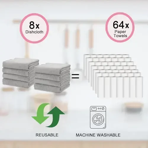 Кухонное полотенце: Kimteny Микрофибра Полотенце для сушки посуды - Упаковка из 8 штук, Супервпитывающее, Быстросохнущее и Гигиеничная уборка