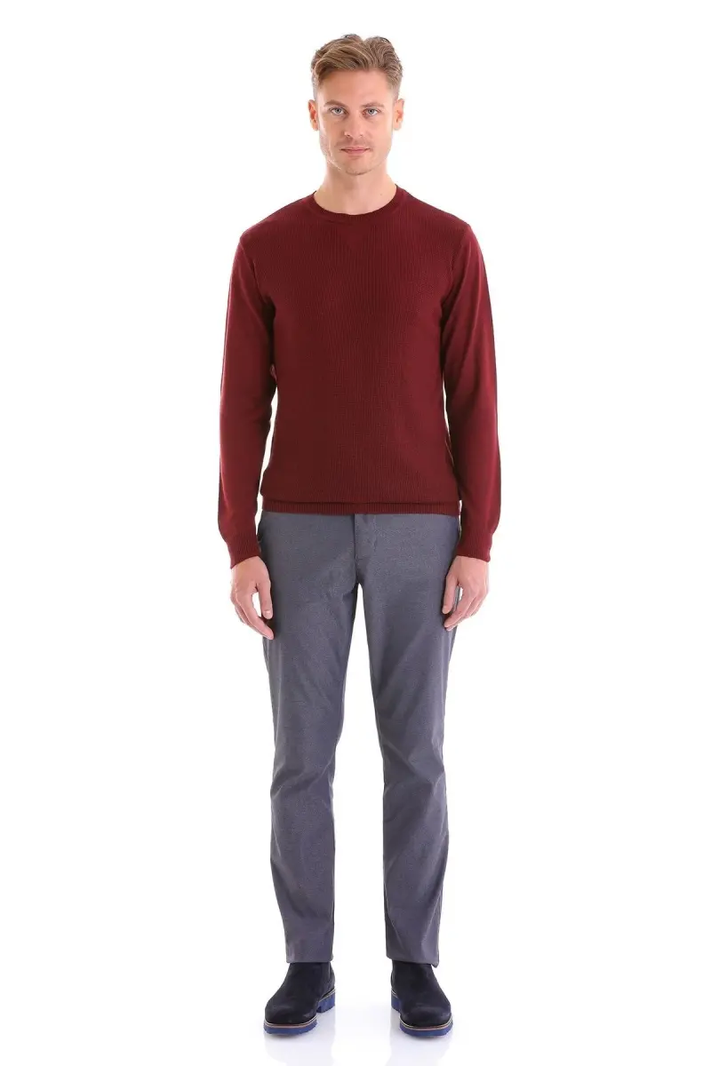 Kiremit Comfort Fit Pirinç Örgü Desenli Bisiklet Yaka Yünlü Yün Kazak-Kiremit