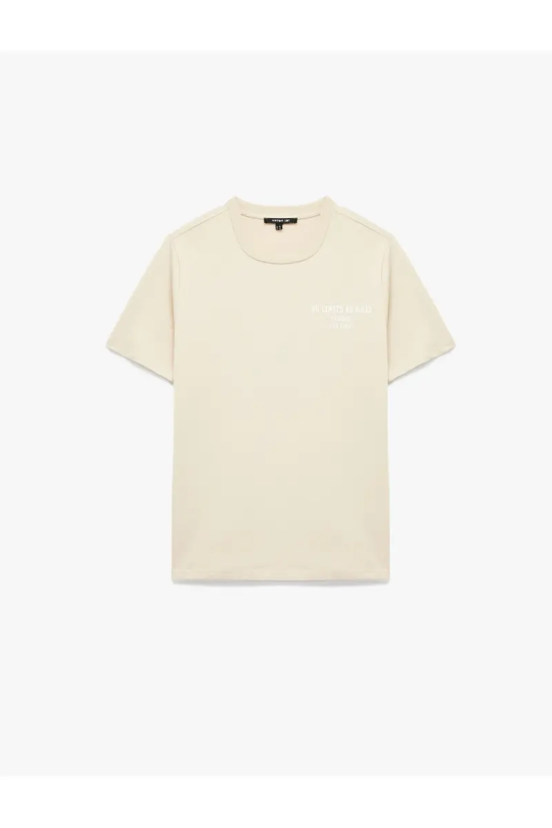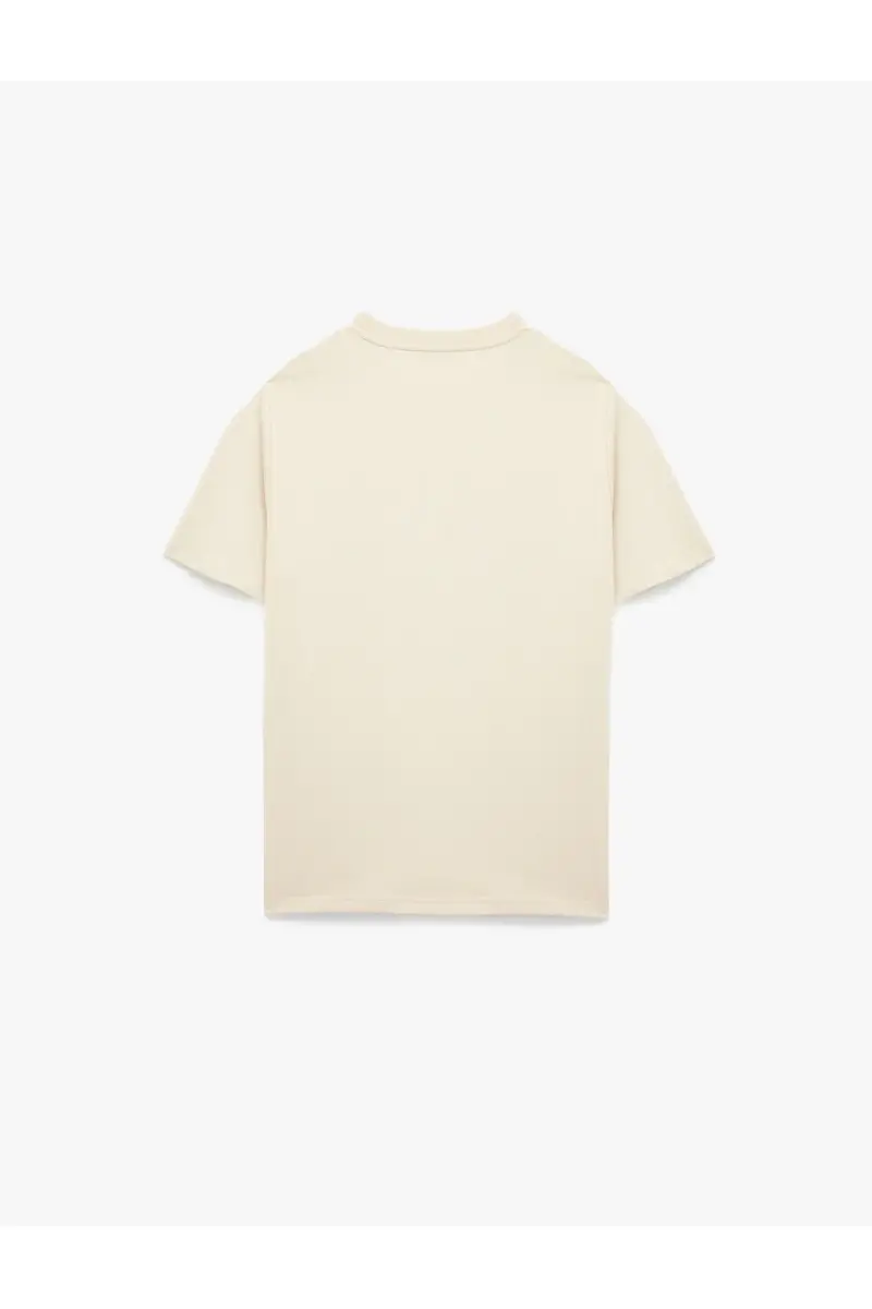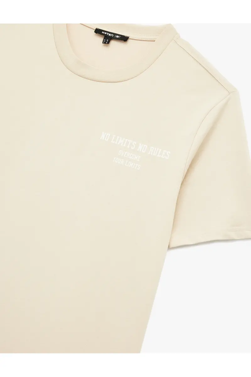Kısa Kollu Bisiklet Yaka Baskılı Oversize Spor Tişört-Ekru