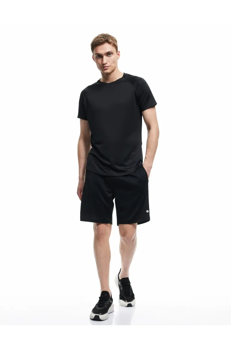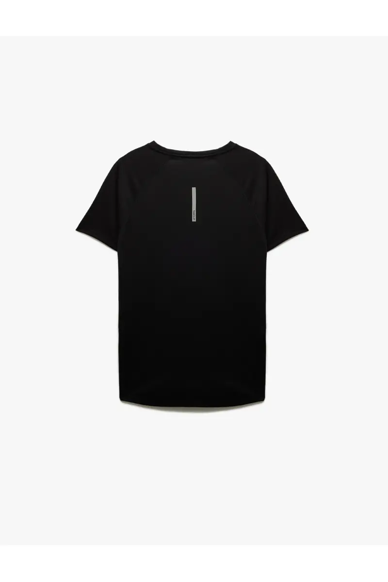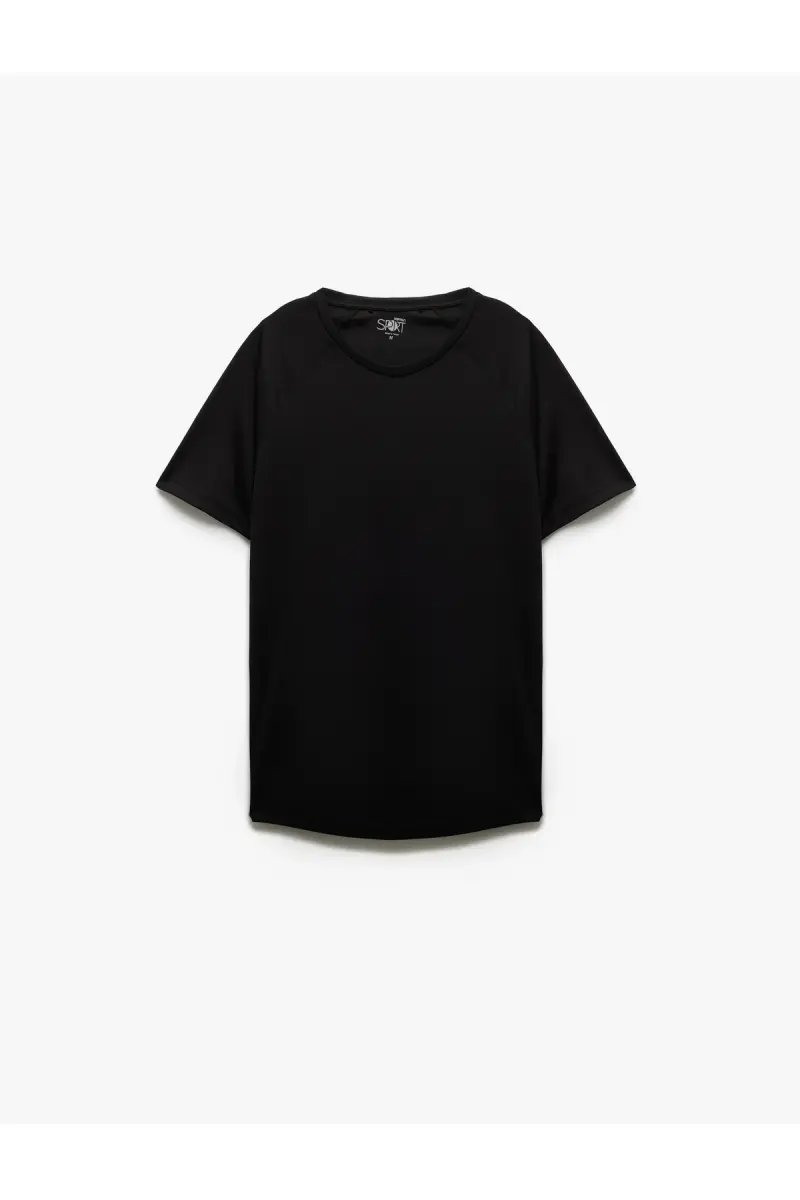 Kısa Kollu Bisiklet Yaka Reglan Kol Arkası Baskılı Slim Fit Spor Tişört-Siyah