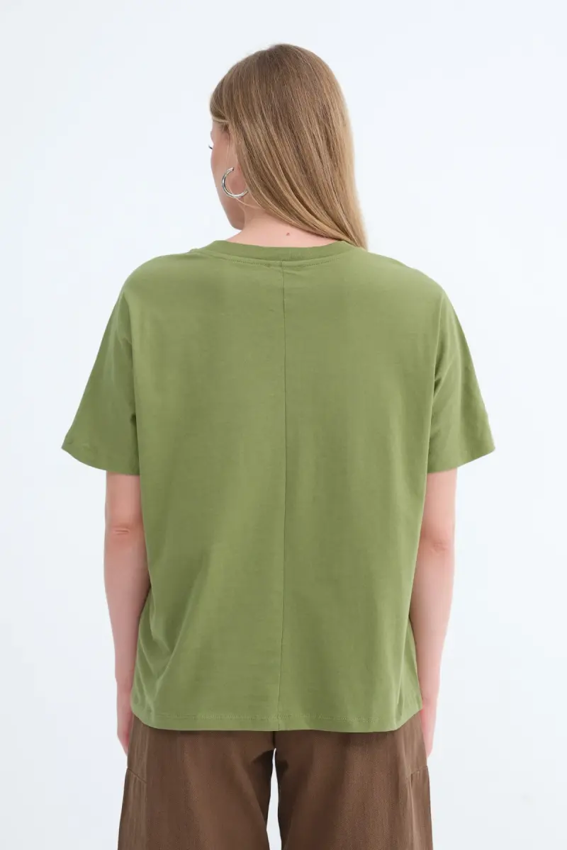 Kısa Kollu Oversize Basic T-shirt P0730-J6J7Y4-Matcha