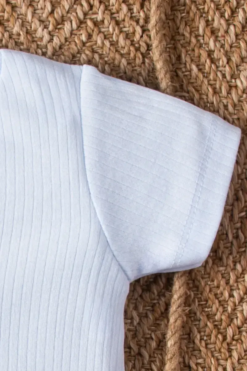 Bebeklerinizin hassas cildine özen gösteren, konforlu ve şık bir seçenek sunuyoruz: Kısa Kollu Tahta Düğmeli Organik Tulum Bebek Takımımız, açık mavi rengiyle miniklerinize ferah bir görünüm kazandıracak. Tamamen organik pamuktan üretilmiş bu tulum, bebeğinizin sağlığını ön planda tutarken, gün boyu rahat etmesini sağlar. Tahta düğme detayları, ürüne doğal ve sevimli bir hava katarken, giydirme ve çıkarma işlemlerini kolaylaştırır. Bebek giyiminde kurtarıcı bir parça olan bu tulum, hem günlük kullanım hem de özel günler için idealdir. Yerli üretim ve dünyaca ünlü Türk tekstil kalitesiyle hazırlanan bu ürün, annelerin beğenisini kazanmaya aday. Mai Perla güvencesiyle sunulan bu tulumu denediğinizde, kalitesine hayran kalacaksınız.Ürünümüz, OekoTex 100 standartlarına uygun olarak private label olarak üretilmiştir, bu da ürünün zararlı kimyasallar içermediğini ve bebeğinizin cildine zarar vermeyeceğini garanti eder. Tulumun üzerinde bulunan baskılar, bebeğinizin sağlığına zararlı hiçbir kanserojen madde içermez. Böylece, bebeğinizin sağlığı konusunda endişelenmeden, gönül rahatlığıyla kullanabilirsiniz. Kısa kollu tasarımı, özellikle sıcak havalarda bebeğinizin serin kalmasına yardımcı olurken, organik pamuklu kumaş, terlemeyi önler ve cildin nefes almasını sağlar.Açık mavi rengi, hem kız hem de erkek bebekler için uygundur ve diğer kıyafetlerle kolayca kombinlenebilir. Tulumun rahat kesimi, bebeğinizin hareket özgürlüğünü kısıtlamaz, böylece oyun oynarken veya uyurken rahatça hareket edebilir. Tahta düğmeler, tulumun şıklığını artırırken, aynı zamanda dayanıklılık sağlar. Ürünün kolayca yıkanabilir olması, annelerin hayatını kolaylaştırır. Mai Perla, bebeklerinizin konforu ve sağlığı için en iyisini sunmaya devam ediyor. Bu organik tulum, gardırobunuzun vazgeçilmez bir parçası olacak.Mai Perla'dan satın aldığınız her ürün, koşulsuz iade hakkınızla birlikte gelir. Üründen memnun kalmadığınız takdirde, 15 gün içinde ücretsiz olarak iade edebilirsiniz. Kampanya fiyatından satılan bu özel ürün, stoklarla sınırlıdır. Bu fırsatı kaçırmayın ve bebeğiniz için en iyisini seçin. Türk tekstilinin kalitesini ve Mai Perla güvencesini deneyimleyin. Bebeğinizin sağlığına ve konforuna yatırım yapın. Unutmayın, Mai Perla ile bebeğiniz her zaman güvende ve rahat.
