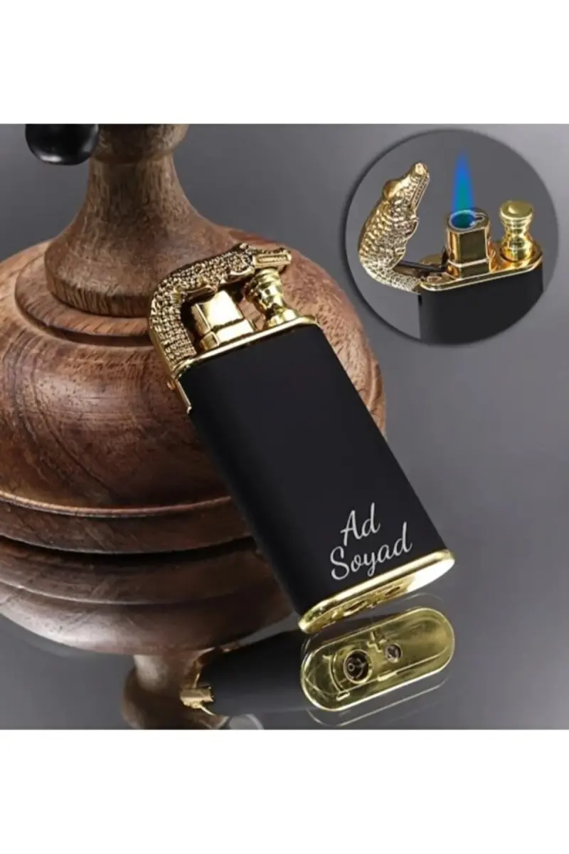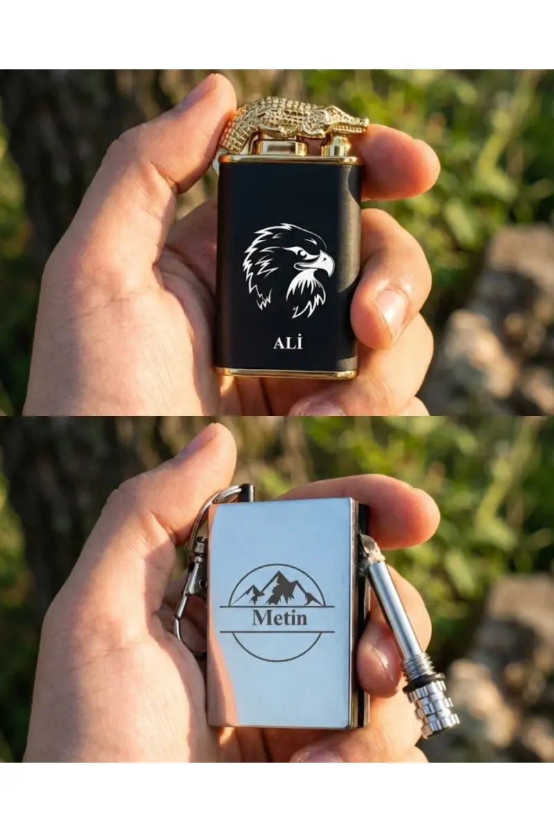 Kişiye Özel 2'li Çakmak 1 Adet Çift Alev Gazlı + 1 Adet Benzinli Çakmak Tasarım ve İsimli-Metalik Çakmak