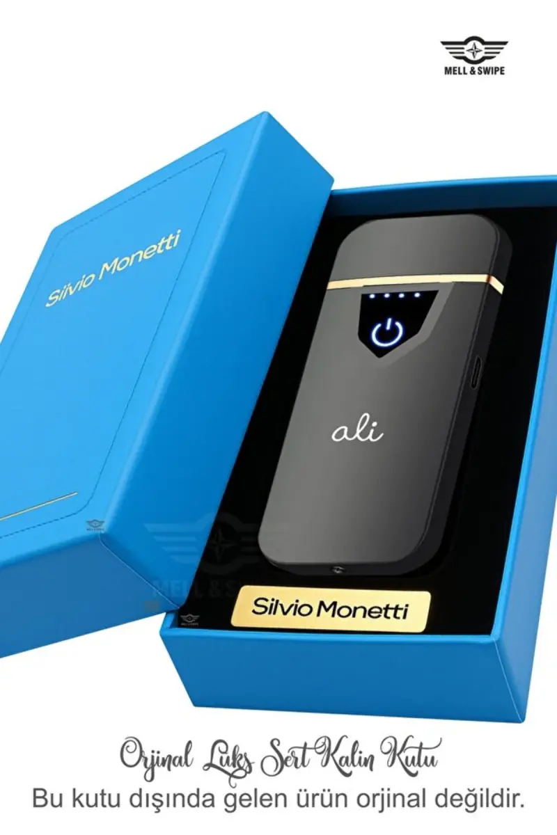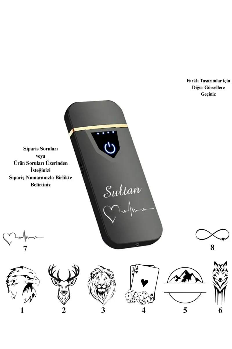 Kişiye Özel Baskılı Vip Alevsiz Çakmak Parmak Izi Dokunmatik Şarjlı Çakmak Siyah-Füme Usb