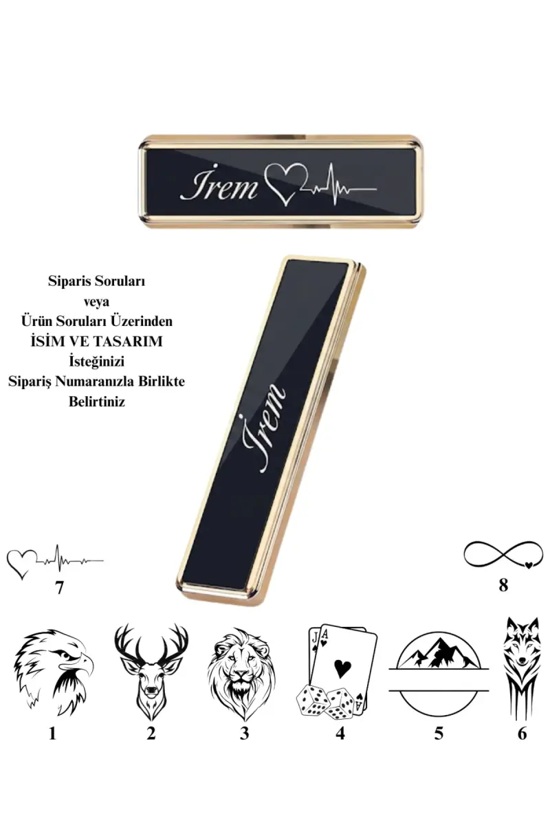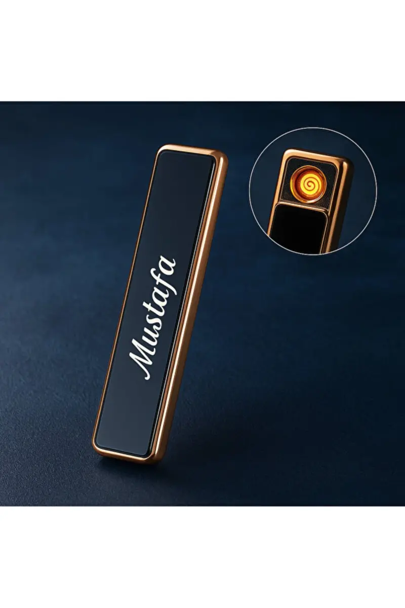 Kişiye Özel Hediyelik Çakmak Tasarım ve İsim Baskılı Usb Şarjlı Alevsiz-Siyah Cam Çakmak