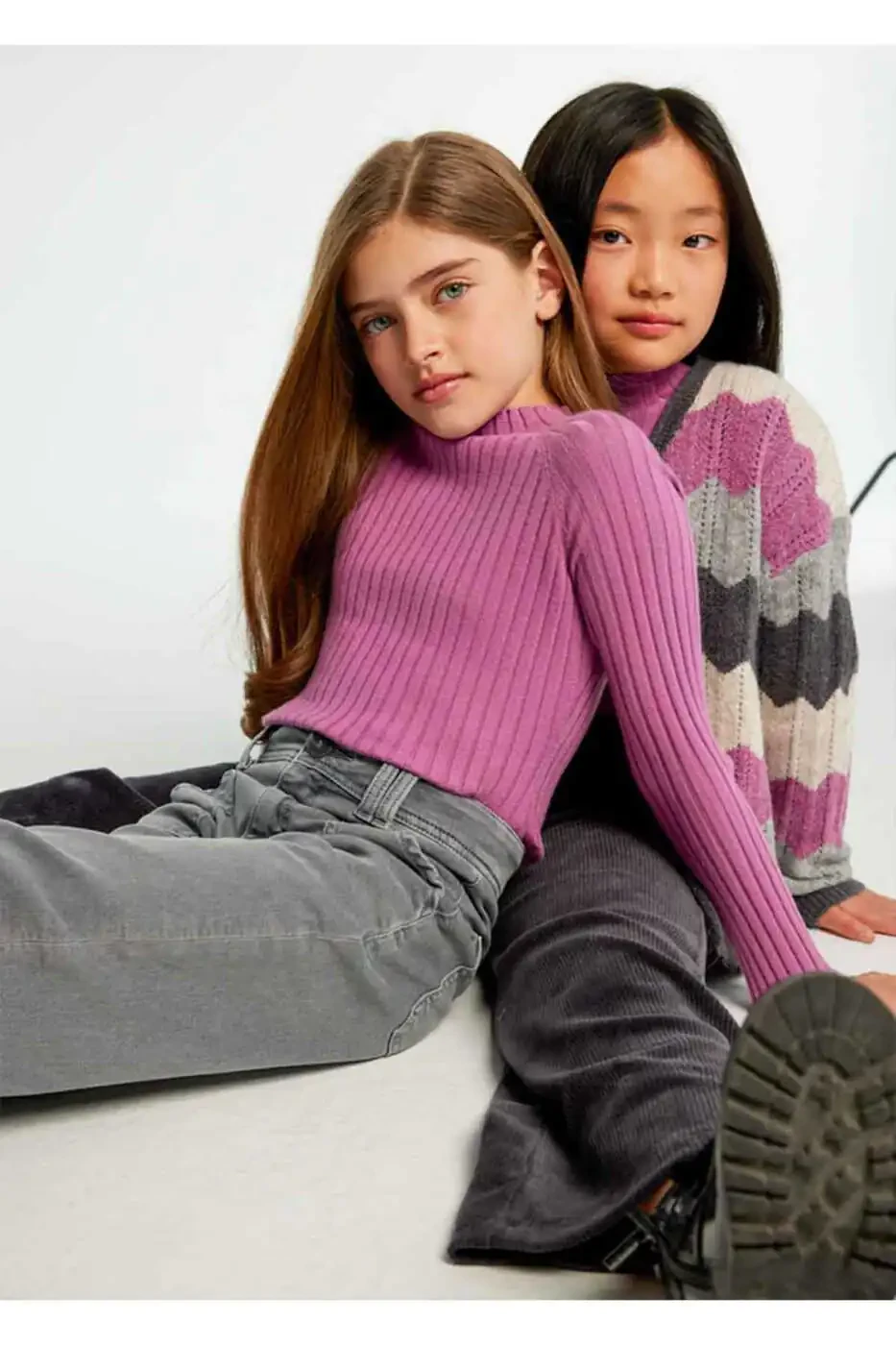 Зимний вязаный свитер для девочек с водолазкой, изготовленный из мягкой и высококачественной вязаной ткани, согреет вашу маленькую девочку в холодные зимние дни. Дизайн с водолазкой придает классический вид, а фиолетовый цвет добавит изюминку в образ вашей девочки.