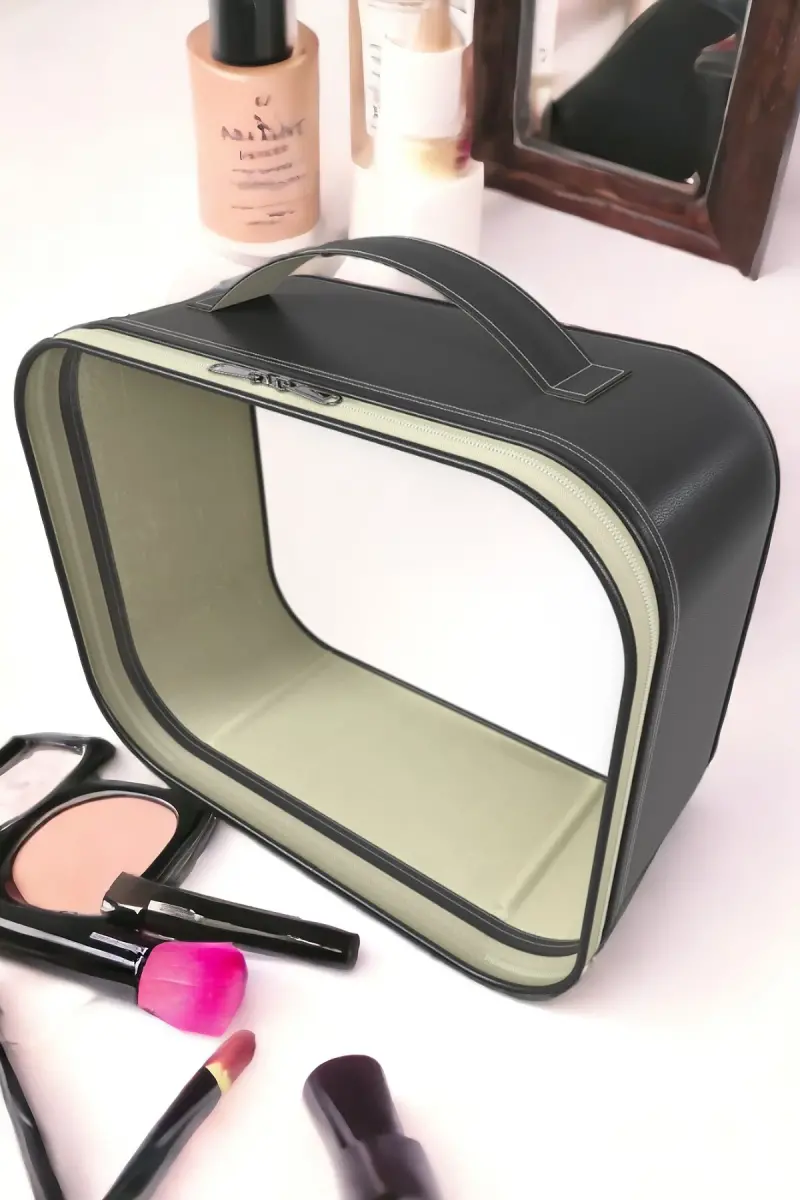 Самый стильный и практичный способ аккуратно и безопасно перевозить косметику в путешествиях или в повседневной жизни: Женский дорожный органайзер для кистей и косметики, прозрачная косметичка - черная! Эта сумка специальной конструкции сочетает в себе функциональность и эстетику, позволяя вам безупречно поддерживать свою косметическую рутину в любое время и в любом месте. Эта сумка, изготовленная из высококачественных материалов, гарантирует долговечность и длительное использование. Благородство черного цвета и прозрачный дизайн позволяют легко видеть содержимое и мгновенно находить нужный продукт. Больше не нужно рыться в чемодане или ящике; все будет у вас на виду, аккуратно на своих местах. Благодаря специально разработанным отделениям для кистей для макияжа щетинки кистей сохраняются гигиенично и без повреждений. Эта сумка предлагает большой внутренний объем для других косметических продуктов и может легко вместить все ваши косметические продукты, от помад до палеток теней, от тонального крема до туши для ресниц. Это идеальное решение для экономии места в путешествиях и поддержания порядка в вещах. Этот дорожный органайзер, разработанный для облегчения жизни женщинам, является многоцелевым решением, в котором вы можете безопасно перевозить не только косметику, но и украшения, средства личной гигиены или другие мелкие предметы. Благодаря своим компактным размерам он не занимает много места в ручной клади или чемодане. Эргономичный дизайн и легкая конструкция обеспечивают удобство переноски, а прочная молния обеспечивает безопасность ваших вещей. Готовитесь ли вы к поездке на выходные или к длительному путешествию, эта косметичка всегда готова сопровождать вас. Этот продукт, сочетающий в себе стиль и практичность, также является отличным вариантом подарка для ваших близких. Побалуйте себя и поднимите свою косметическую рутину на новый уровень. Всегда будьте ухожены и аккуратны с женским дорожным органайзером для кистей и косметики, прозрачной косметичкой - черной. Эта сумка, разработанная для наилучшей защиты и демонстрации вашей красоты, станет незаменимой вещью для любителей макияжа!