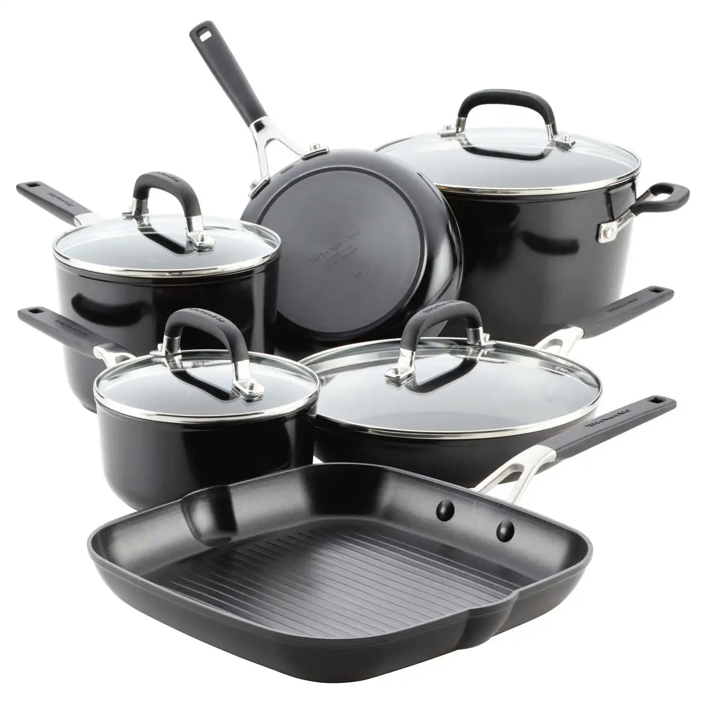 KitchenAid Hard Anodized 10 Piece Nonstick Pots and Pans Set - Onyx Black