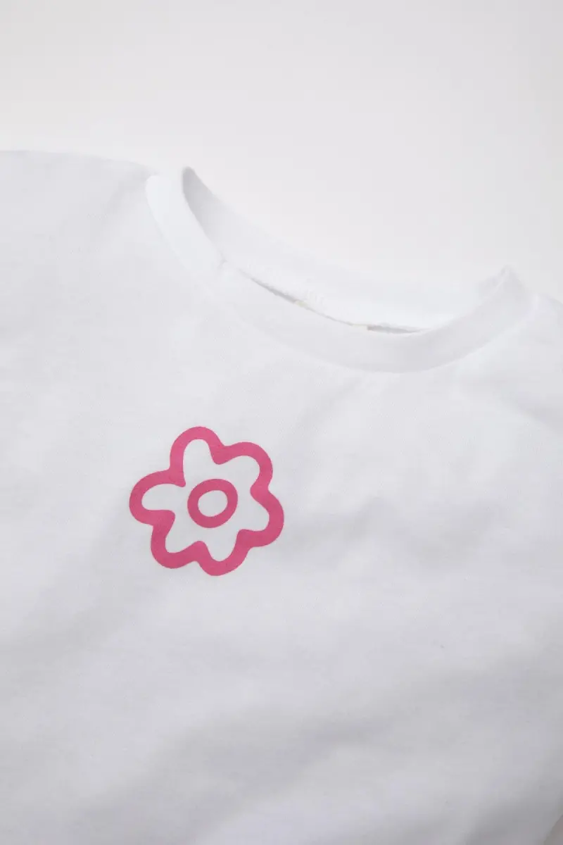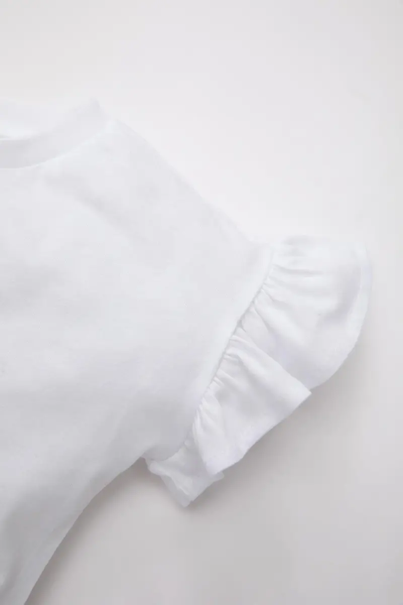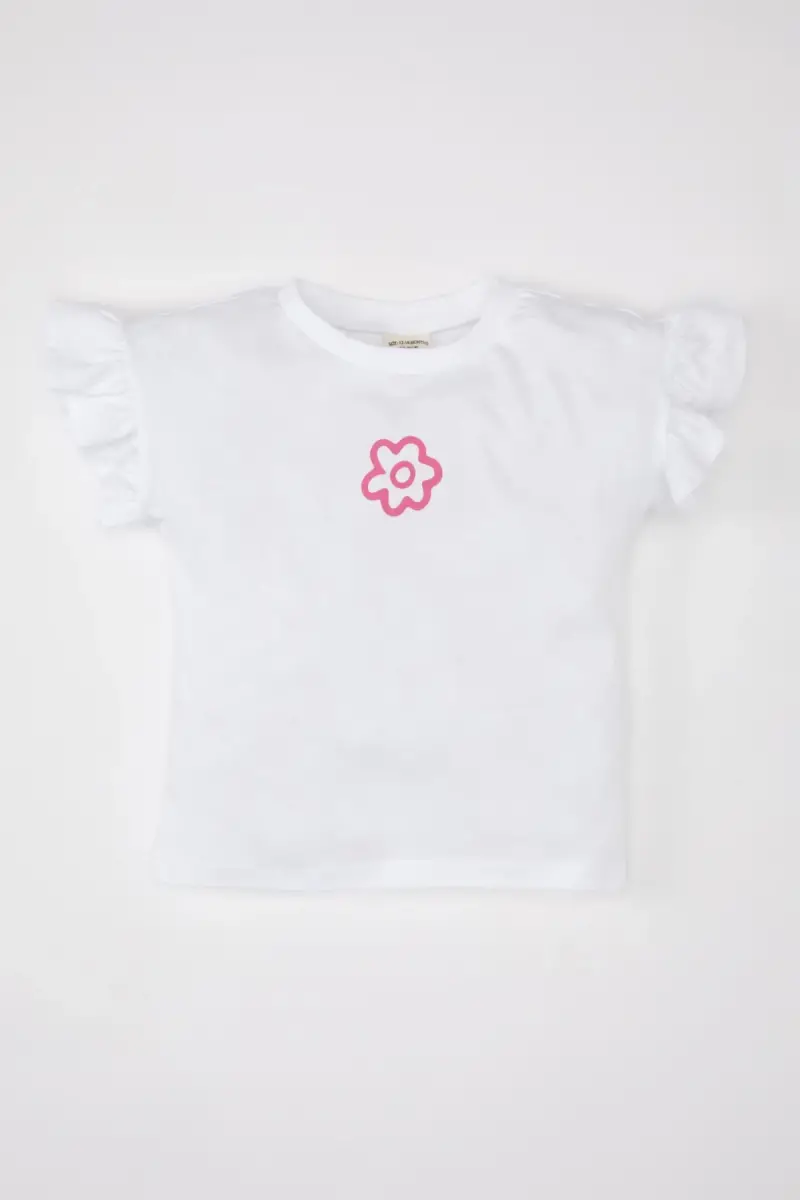 Kız Bebek Bisiklet Yaka Çiçekli Kısa Kollu Tişört Z9212a225sm-Beyaz
