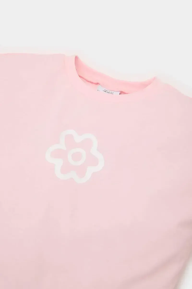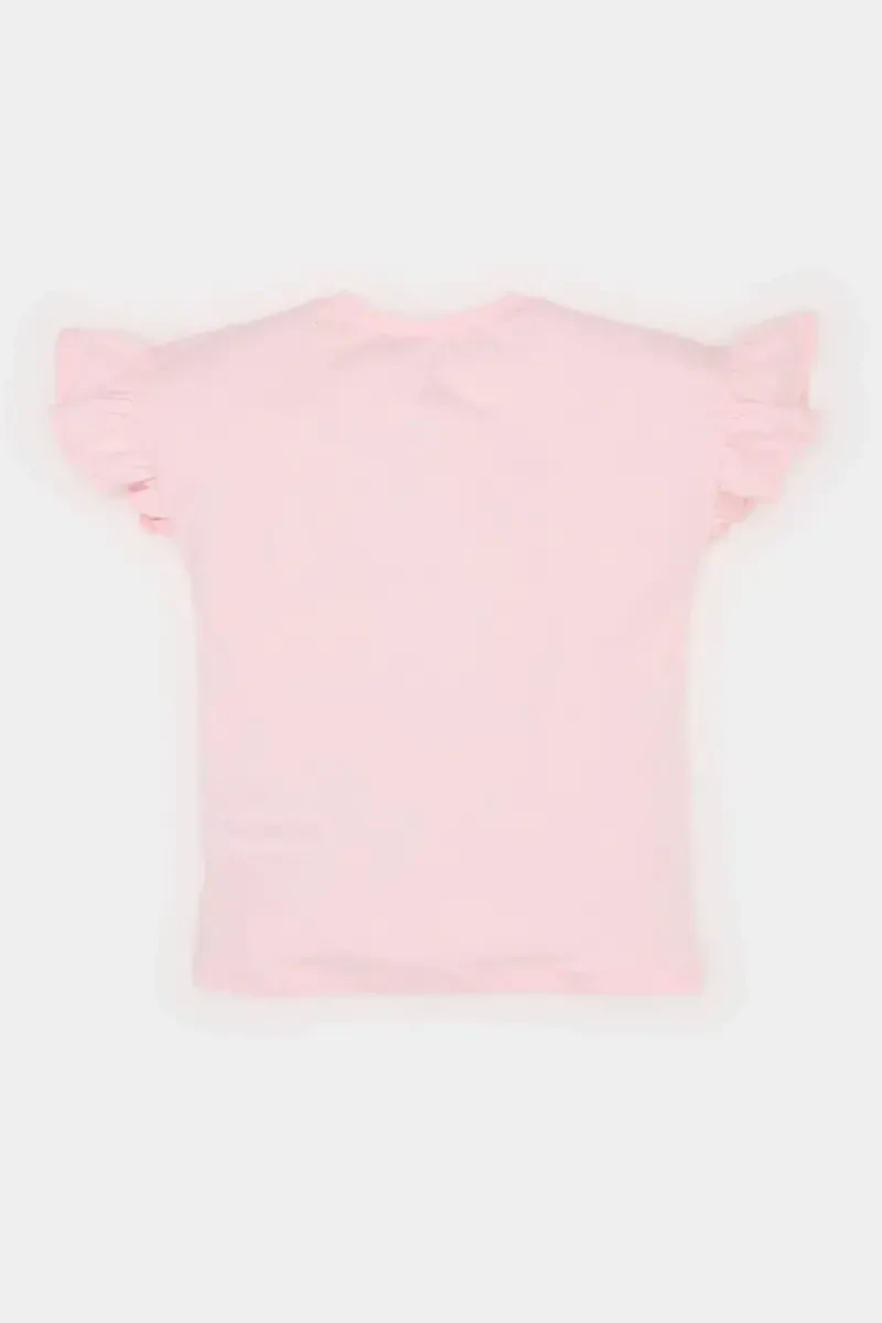 Kız Bebek Çiçekli Tişört | Pamuklu, Bisiklet Yaka, Kısa Kollu