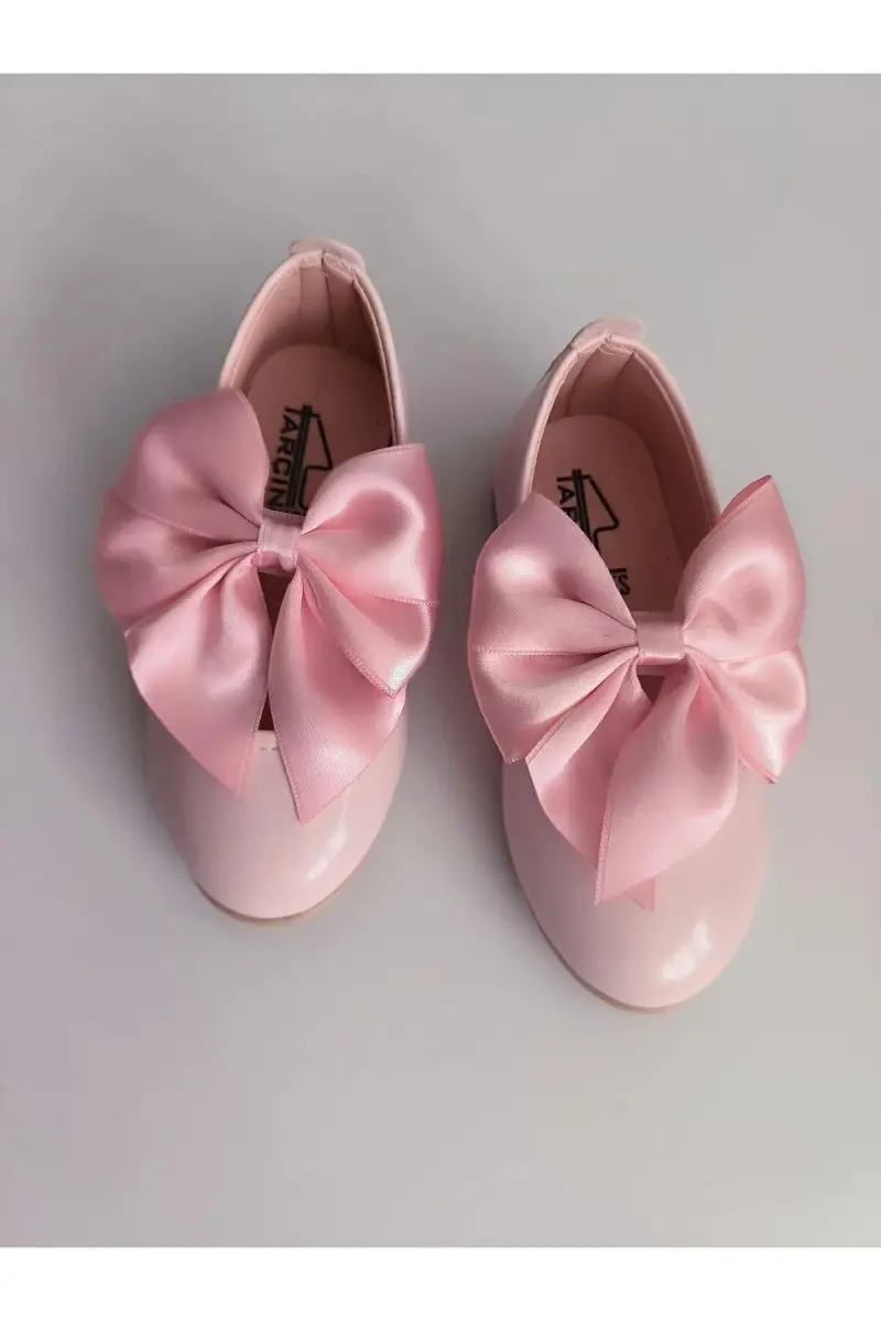 Kız Bebek-Çocuk Fiyonklu Babet Ayakkabı-PEMBE RUGAN