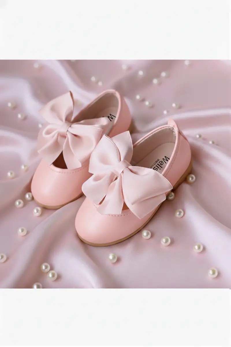 Kız Bebek-Çocuk Fiyonklu Babet Ayakkabı-Soft Pembe