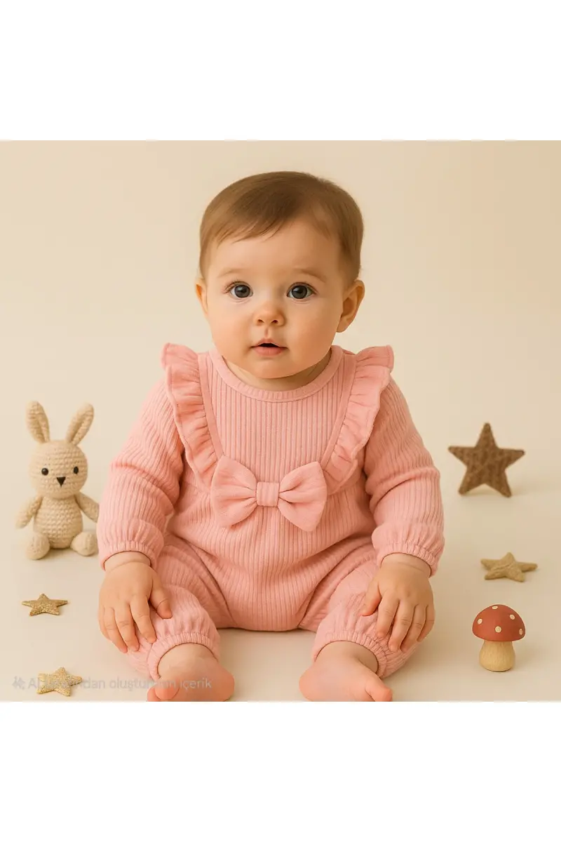 Kız Bebek Tulum Fırfırlı Kurdeleli %100 Pamuk Tulum-somon