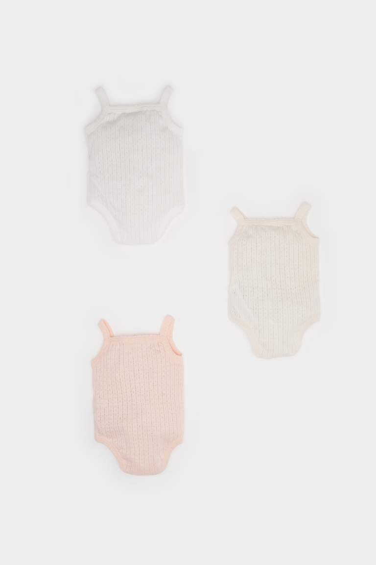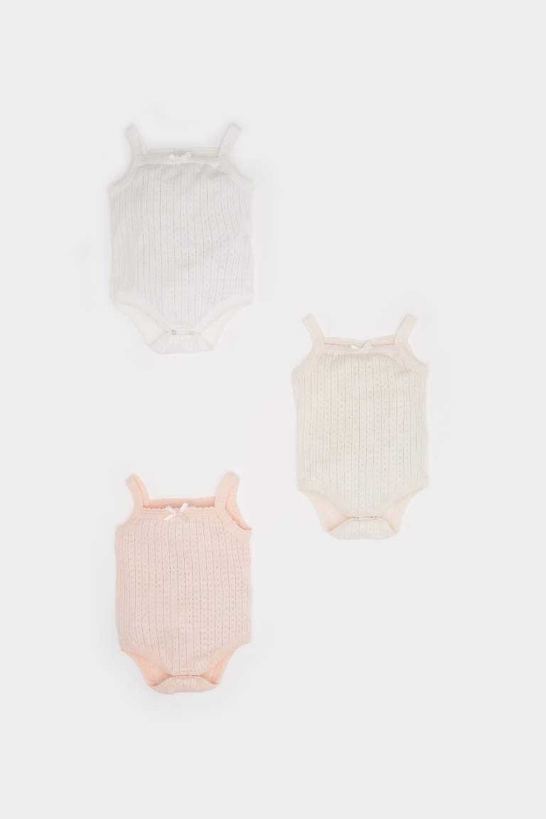 Yeni doğan, body, kız bebek, pamuk, açık pembe, çıtçıtlı, kare yaka, 3'lü set, askılı, yumuşak