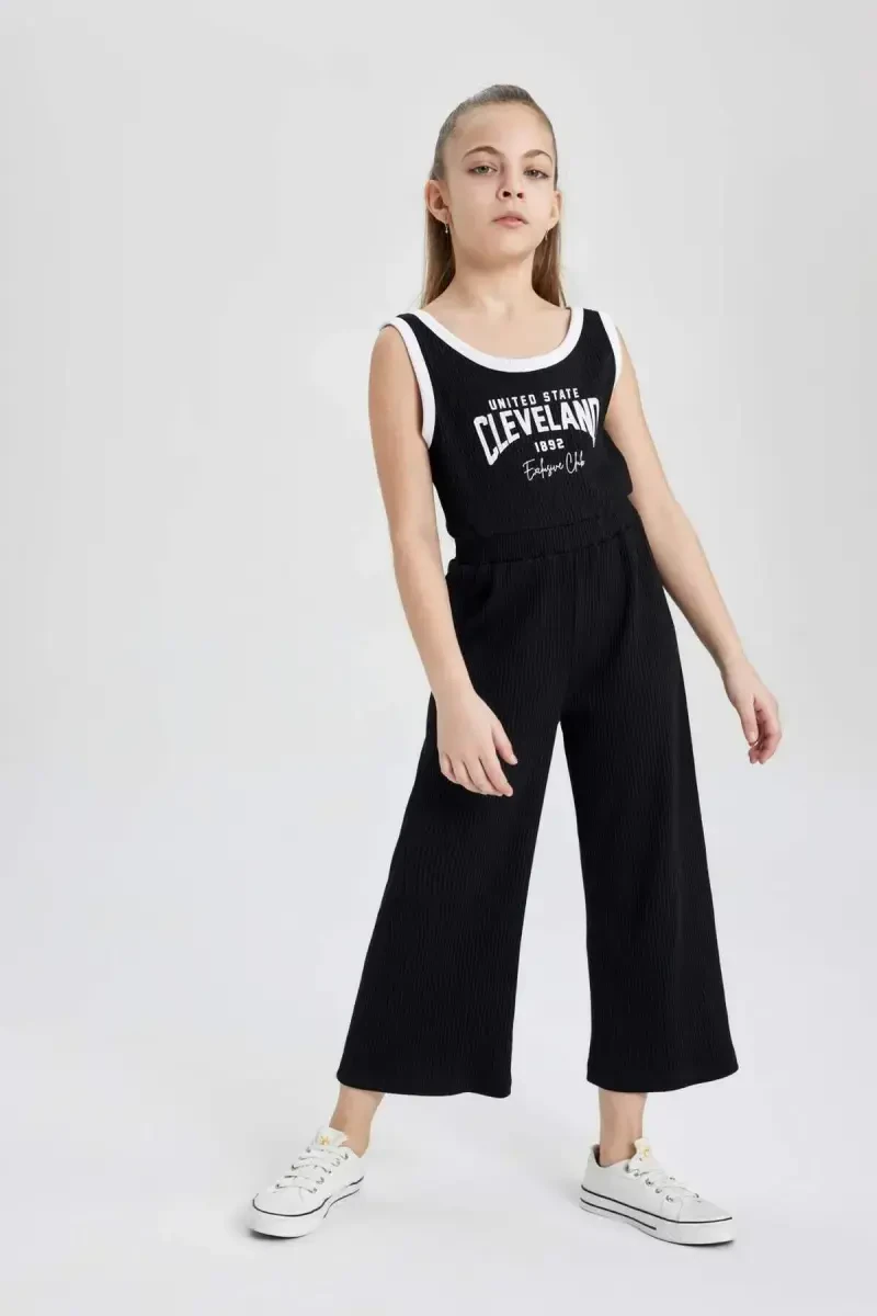 Girls' Printed Ribbed Knit Sleeveless Long Jumpsuit B4878A824SM - Stylish and Comfortable
