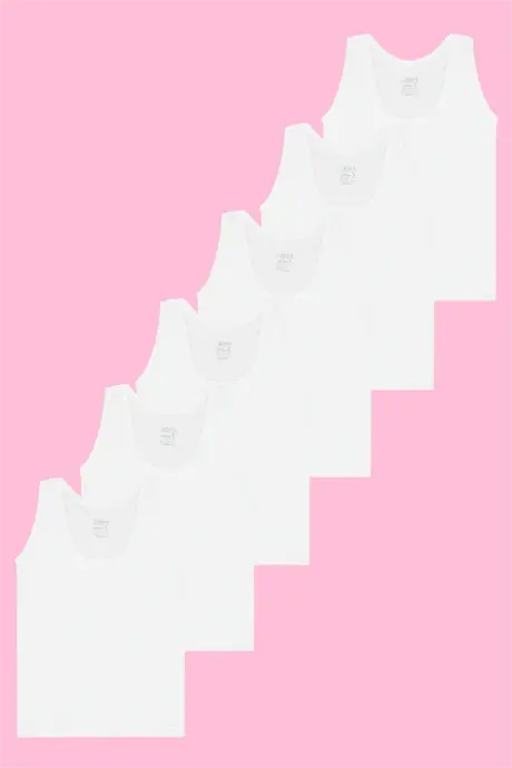 Kız Çocuk Beyaz Kalın Askılı Atlet 6'lı Paket %100 Pamuklu Yumuşak Esnek Kumaş